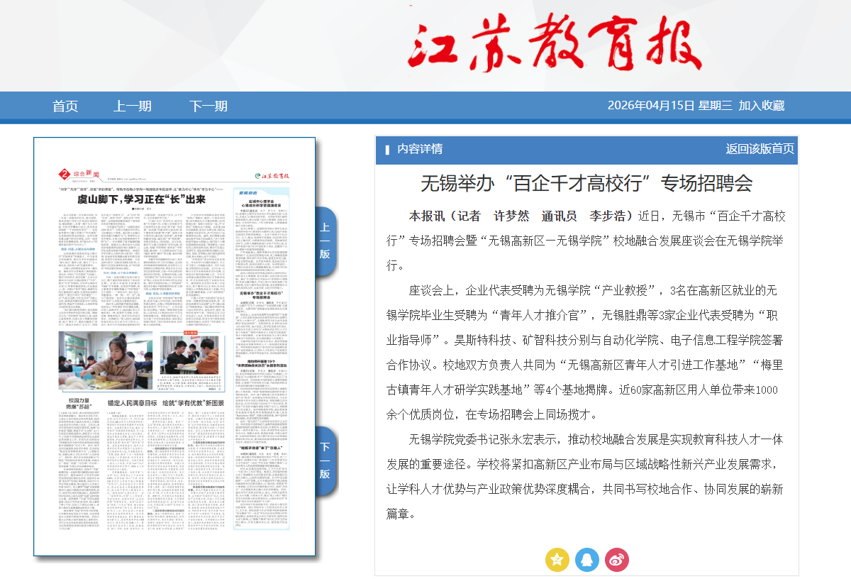 【校园要闻】 我校召开无锡传感网大学科技园高水平优化重塑专题推进会 4月2日,学校召开无锡传感网大学科技园高水平优化重塑专题推进会,贯彻落实省教育厅对国家级大学科技园优化重塑建设要求,认真分析大学科技园发展现状,对优化重塑工作进行部署。校党委书记张永宏、校长孙雁飞等全体校领导出席会议,各职能部门及二级学院主要负责人参加会议。会上,大学科技园相关负责人汇报了优化重塑工作进展与下阶段重点计划,大科园管理办公室对任务分工与责任清单作详细解读。教务处、人力资源处、物联网...