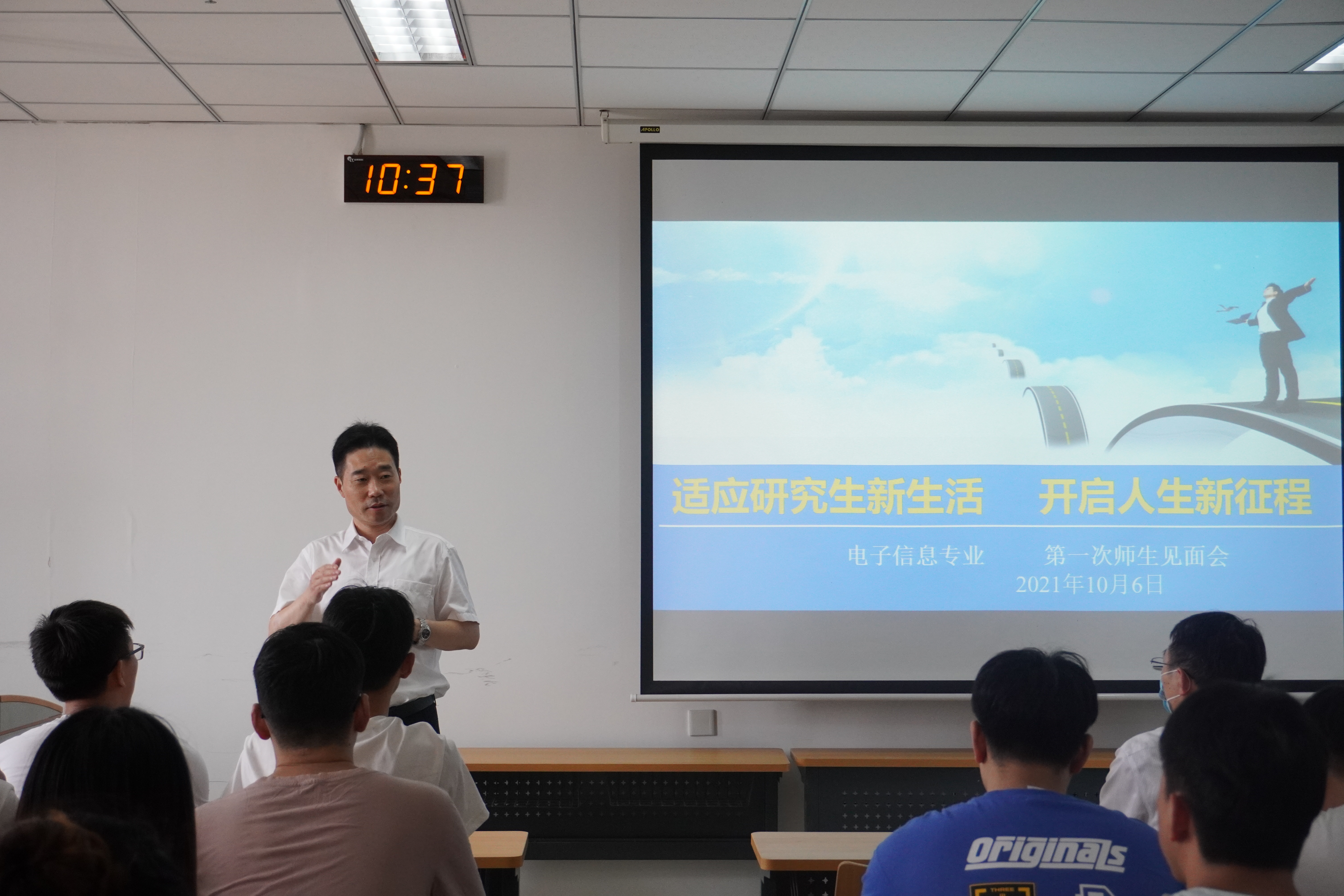 在研究生宿舍,杨建新与新同学进行亲切交谈。他对新生的到来表示了热烈欢迎,关切询问新生报到后的思想、生活等方面情况,深入了解他们对专业学习、未来发展等方面的想法,并就学生提出的生活和学习方面的问题进行解答。他勉励同学们要做有担当的人,将小我融入大我,勇担新时代的重任,力作无锡学院学生的科研榜样,共创南信大无锡研究生院和无锡学院的光明未来。在新生见面会上,他向大家介绍了无锡学院的发展概况,强调推进“三位一体”办学格局建设的重要性,他指出,无锡学院将始终坚持“开放发展、协同发展、特色发展”的发展理念,向未来的无锡大学迈进。他希望同学们要在科研道路上勇于尝试和探索,不畏困难,勇往直前,争做新时代先锋。