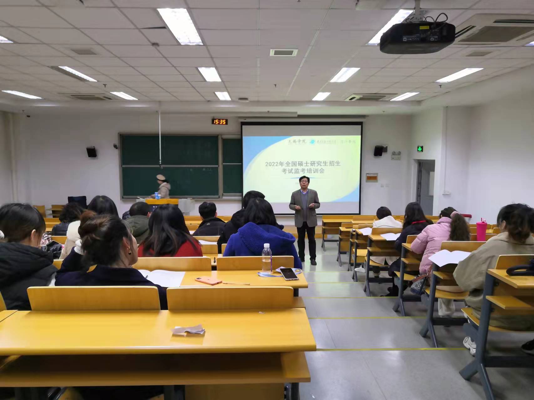 考前,学校严格做好考务工作人员的筛选工作,认真响应防疫要求,有序组织全体考务工作人员培训会,严格考务流程和细节要求,并针对2022年研究生招生考试面临的特殊形势和相关要求进行重点强调,确保要求统一、指令统一、标准统一、行为统一。