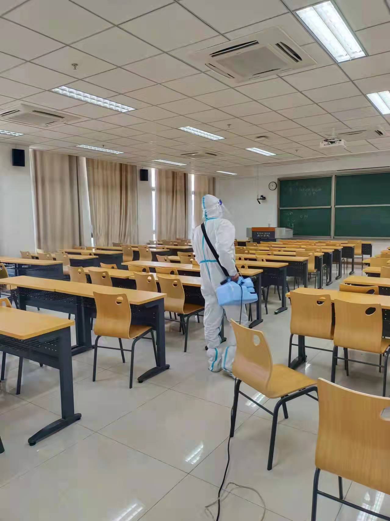本着对广大考生、师生员工生命健康负责,学校制定《应急处置预案》,根据实际情况,在校门口设置了考生专用通道及备用通道、体温复测点、留观点、隔离考场、隔离室等,配备隔离考生转运专用车辆,每个考场配备足够的防疫物品,在每场考试前后均对每个考场及周边环境进行了消杀,确保考生及考务工作人员身体健康。