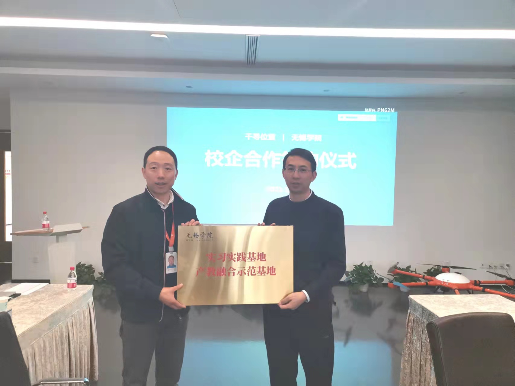 会上,在双方领导的见证下,无锡学院刁一伟和千寻位置网络公司房靖代表各自单位签署校企合作协议。曹广喜与陈俊共同为实训基地揭牌。