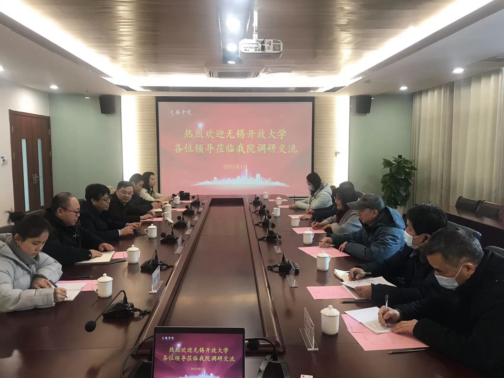 王友明对无锡开放大学一行的到来表示热烈欢迎。他首先介绍了无锡学院的基本情况及发展历程,从办学定位、专业建设、发展规划等方面介绍了学校发展情况,他表示希望今后与无锡开放大学可以有更多交流学习的机会,进一步加强两校合作。
