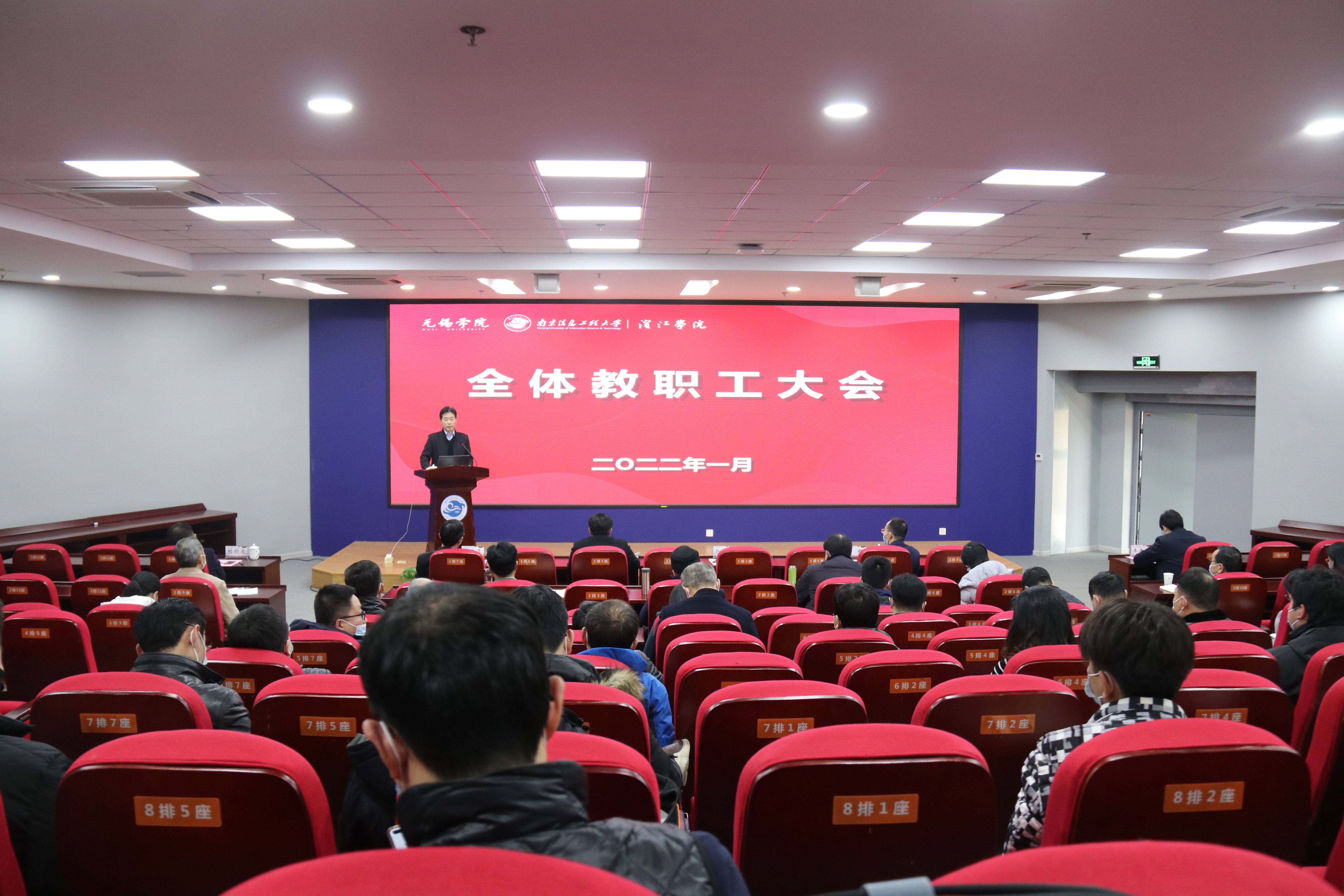 “回首2021,我们凝心聚力、笃行不怠,学校各项事业发展硕果累累、亮点纷呈。”会上,张永宏以《高起点谋划高站位对标高质量发展》为题作学校工作报告,围绕“启航”“对标”“展望”三个关键词,全面回顾总结了2021年我校各项工作取得的显著成绩,并对2022年重点工作进行整体部署。他指出,这一年,学校围绕建设一流创新应用型大学的办学目标,明确了“立足无锡、融入产业、面向区域、服务发展”的办学定位,在机构优化、机制健全、学科建设、师资引进、教学改革、科技创新、人才培养、考研就业、国际合作、地方对接等多个领域取得了骄人的成绩:4个学科获批江苏省十四五重点学科,领先同类高校;物联网工程专业获批国家一流本科专业,9个专业入选省一流专业;本科生生源质量再创新高;学生创新实践能力大幅提升,全国大学生电子设计竞赛等国家级比赛获奖数翻番;学生考研率达15.75%;荣获省级教学成果特等奖;科研到账经费首破1000万元;成功引进国家特聘专家;获批江苏省外国专家工作室、中国电信集团人才实训基地......一个个亮眼的成绩单为学校“十四五”良好开局起好了步。