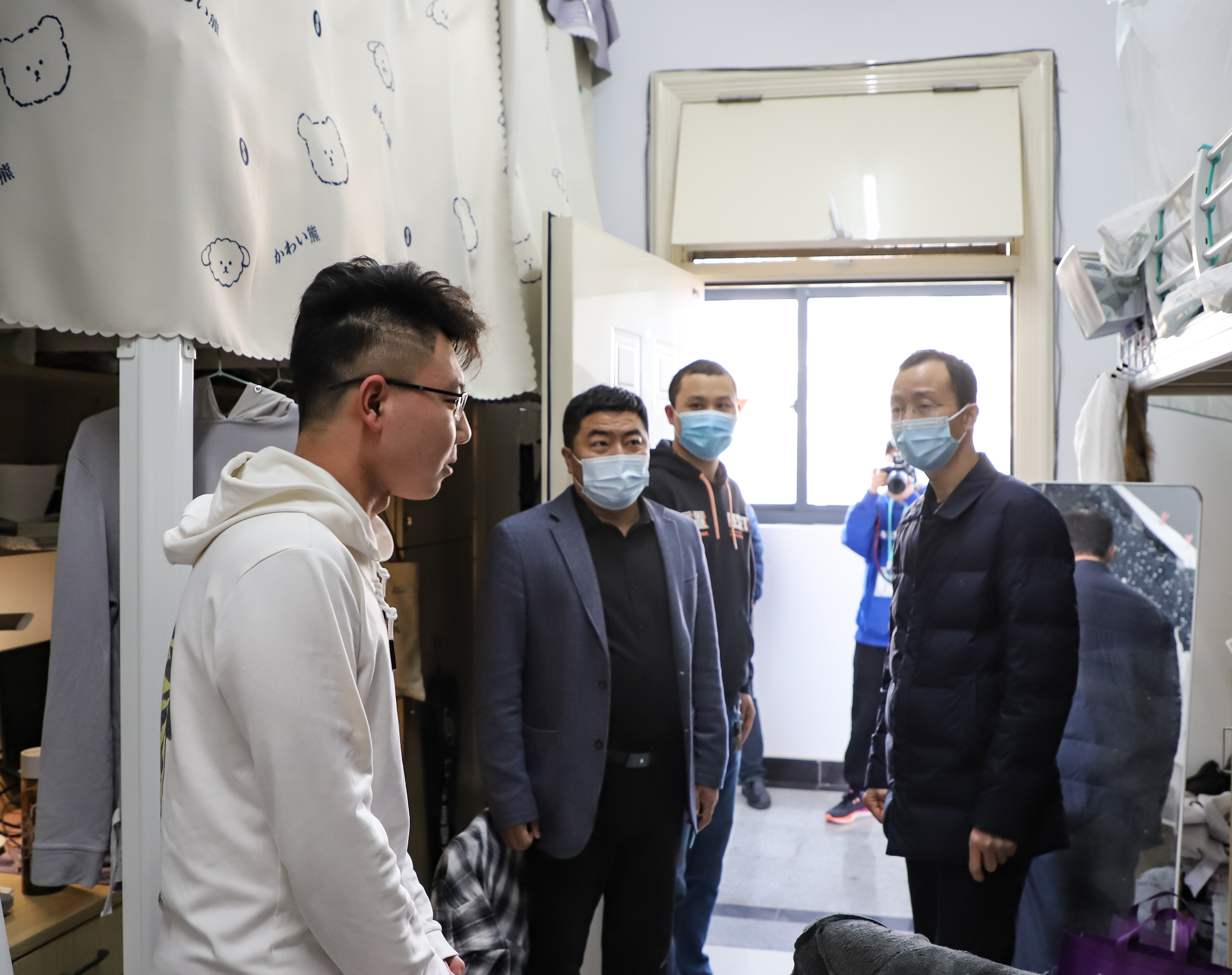 3月5日下午,校党委副书记匡辉带队到学生宿舍看望慰问第二批返校学生,学生工作处、团委等相关单位负责人陪同。