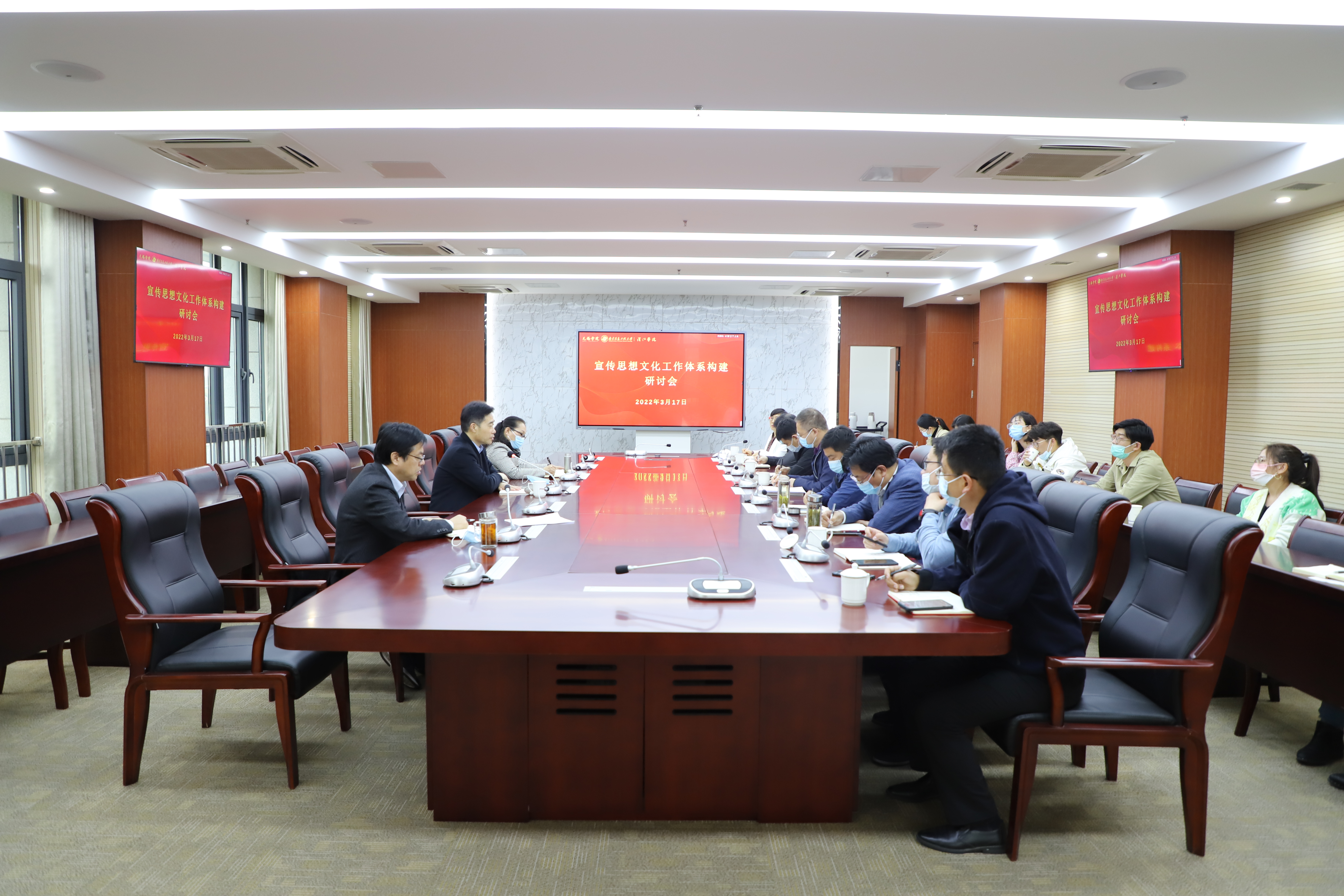 3月17日下午,我校召开宣传思想文化工作研讨会,校党委书记杨建新、副校长梁惠娥、纪委书记王友明和相关职能部门负责人、二级学院教职工代表参加会议。会议由党委宣传部负责人程艳丽主持。
