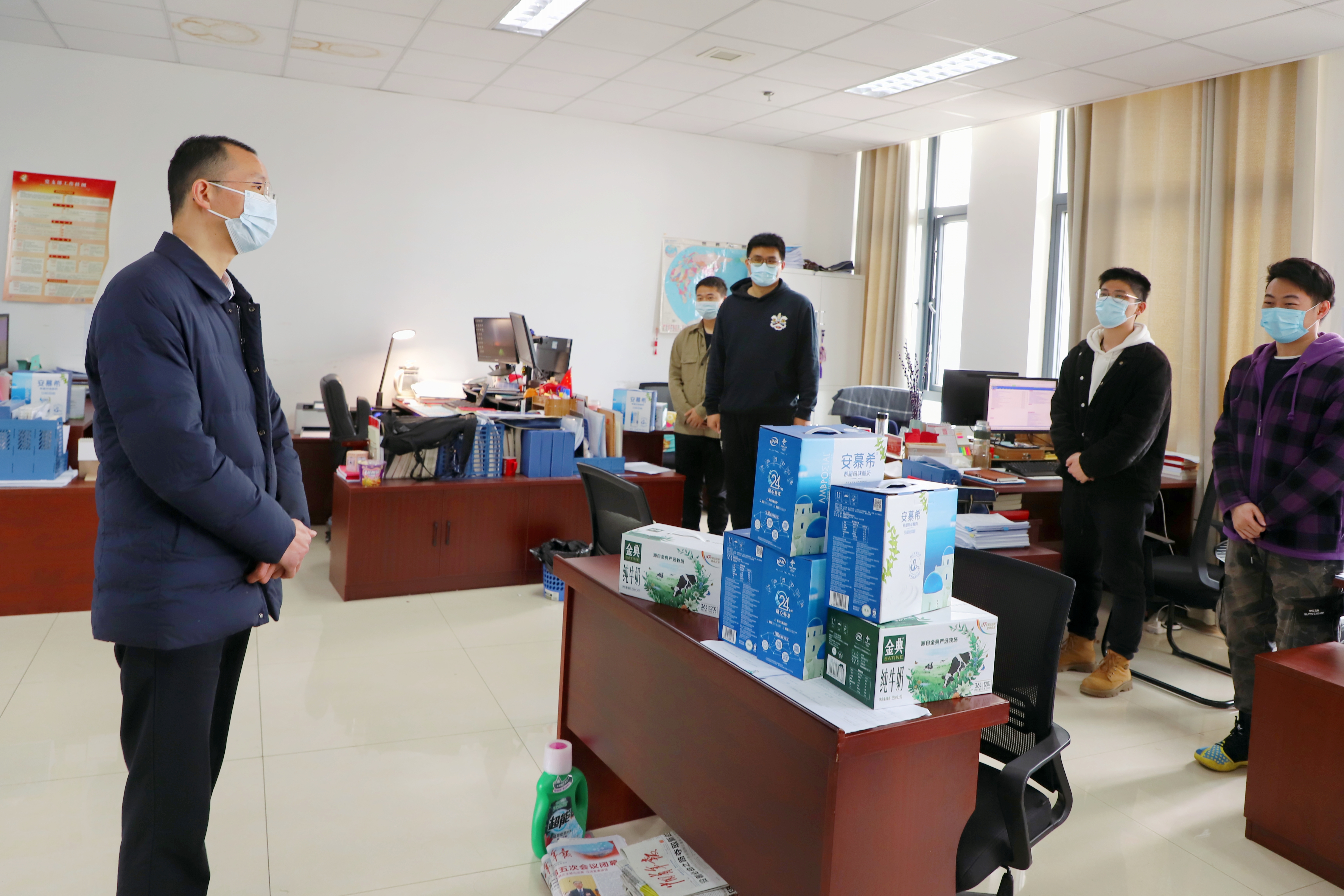 4月5日,校党委副书记匡辉赴各二级学院慰问在校辅导员们,匡辉与辅导员们亲切交谈,对他们在特殊时期坚守岗位、辛勤付出表示感谢,并叮嘱大家一定要做好自身防护。
