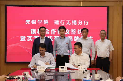 中国建设银行无锡分行人力资源部、公司业务部、机构业务部、金融科技部、锡山支行领导,校党委校长办公室、教务处、学生工作处、商学院、财务处部门负责人参加了仪式并见证签约与揭牌。(财务处/文:陆秀娟,图:孙振;审核:孙振)