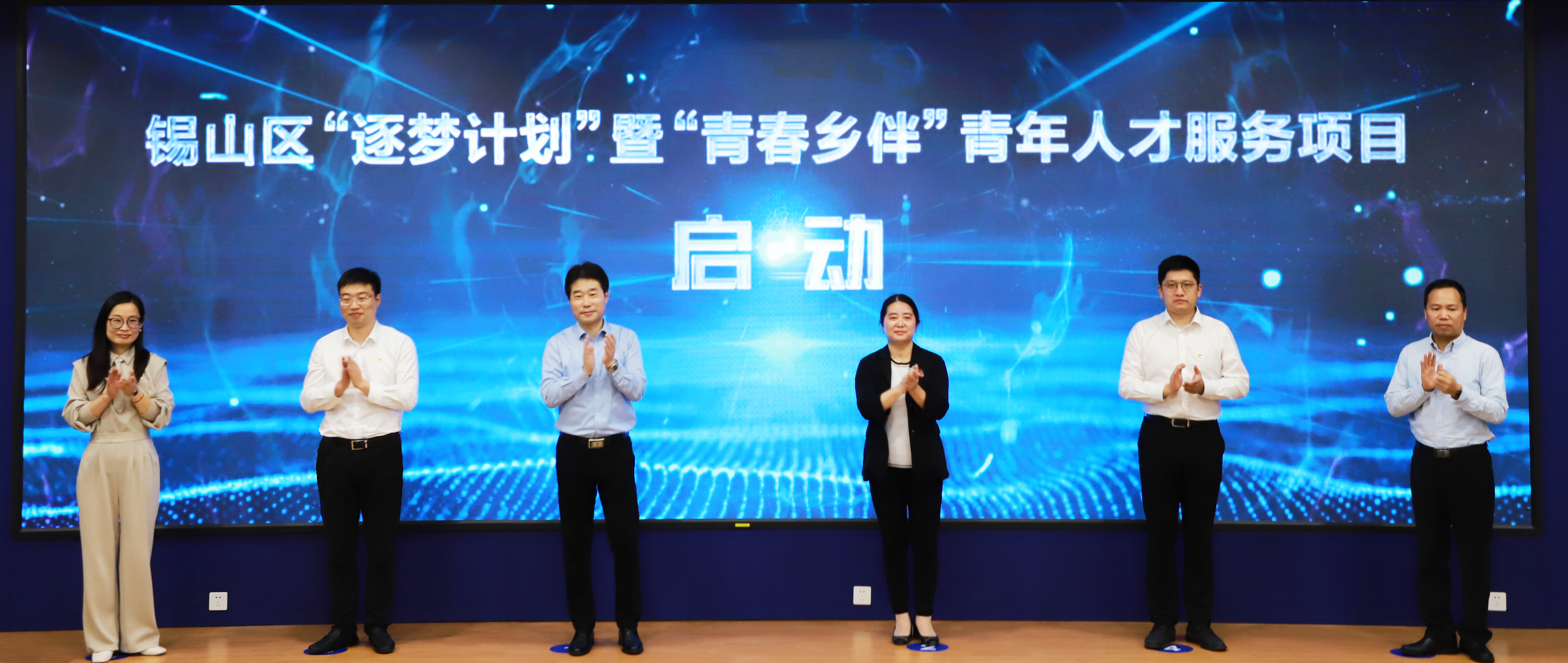 我校党委书记杨建新,团市委副书记余佳欢,锡山区委常委、组织部部长张琳,团区委书记牟晟,区农业农村局副局长朱坚,区人社局副局长褚云雁,共同启动了锡山区青年人才“逐梦计划”暨“青春乡伴”青年人才服务项目。