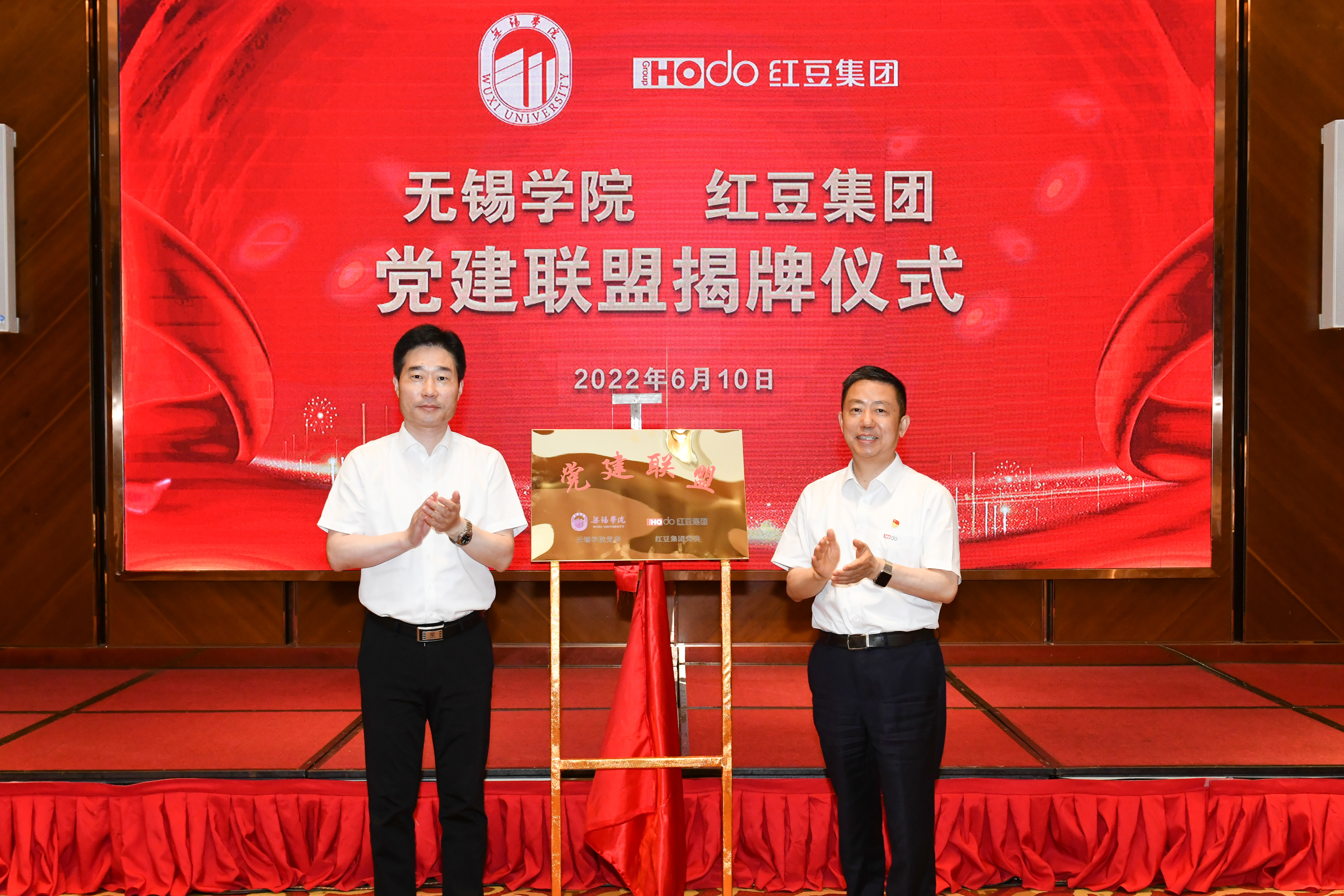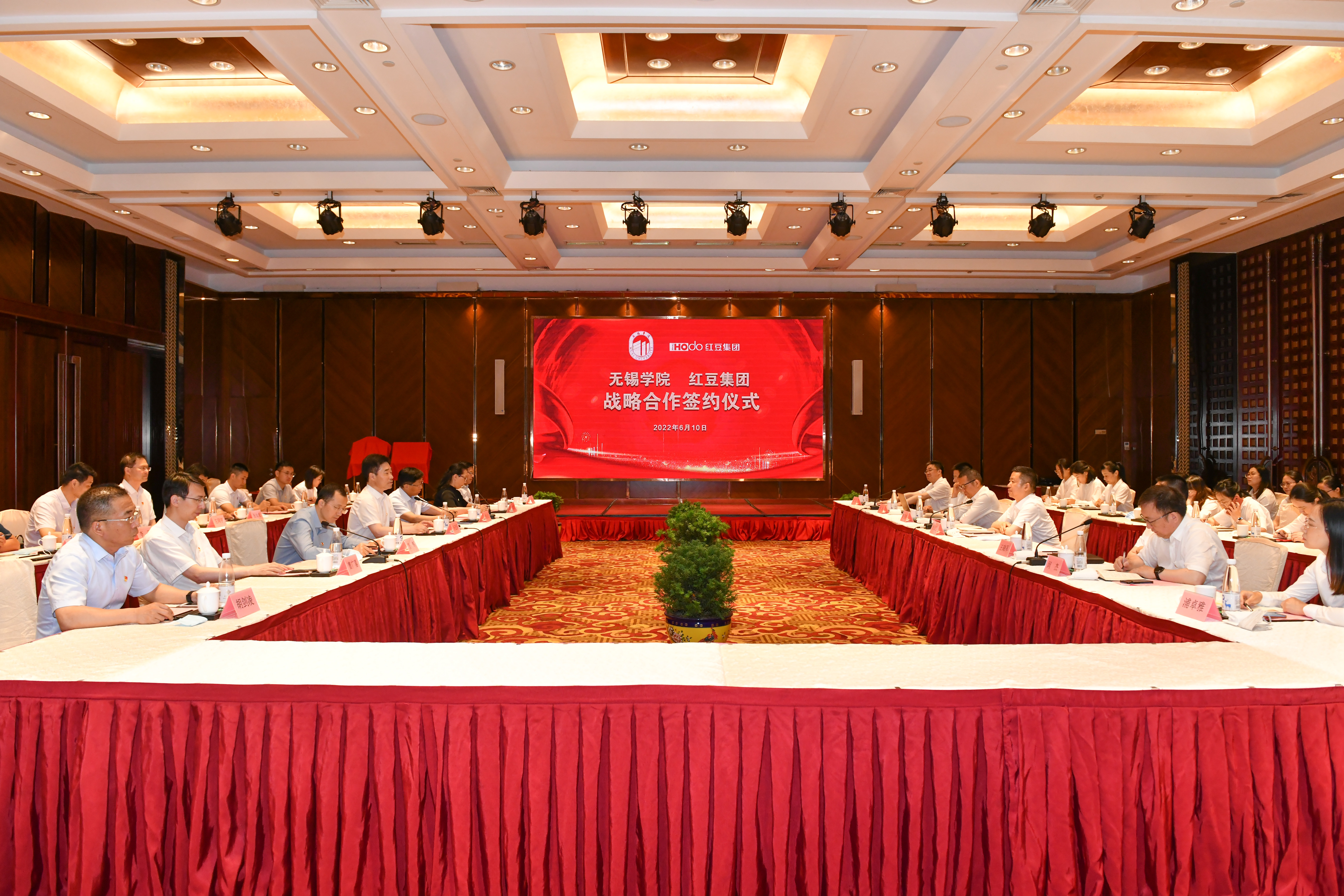 6月10日,我校与红豆集团举行战略合作签约仪式。红豆集团党委书记、董事局主席周海江,党委副书记、副总裁钱静,战略发展部部长闵杰、工业互联网公司总经理奚丰、人力资源部部长浦卓雅、红豆大学执行校长邓川,我校党委书记杨建新、校长张永宏,党委副书记匡辉、副校长梁惠娥、副校长曹广喜、纪委书记王友明、副校长胡剑凌出席签约仪式。仪式由张永宏主持。