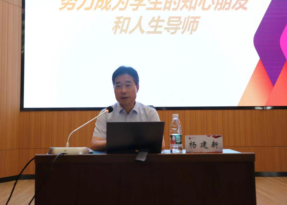 23日上午,校党委书记杨建新教授受邀作《坚守立德树人初心,努力成为学生的知心朋友和人生导师》专题培训。杨书记结合自身多年的思政工作经历,从心怀对教育事业的热爱、争做正己修身的榜样、强化专业能力的提升、注重对细节敏感的把握等四个方面解读了如何成为一名好老师、好辅导员。他勉励现场辅导员们,要坚持“四心四力”,用自己最宝贵的青春时光浇灌教育事业,在学校开创特色鲜明一流创新应用型大学的新征程上贡献力量、收获成长。整场培训理论与实践相结合,既引领大家理性思考,也启发大家勇于实践创新,对于激发全体辅导员干事创业热情、推进学校思政工作发展具有很强的指导意义。