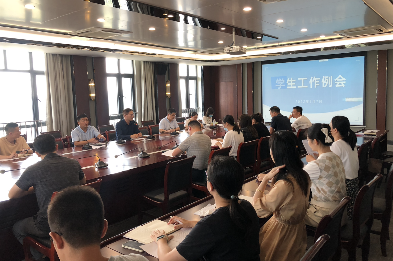 9月7日下午,我校本学期首次学生工作例会在行政楼525会议室召开,副校长左同宇,相关职能部门负责人,各学院分团委书记,学工处、团委相关工作人员参加会议。会议由左同宇主持。