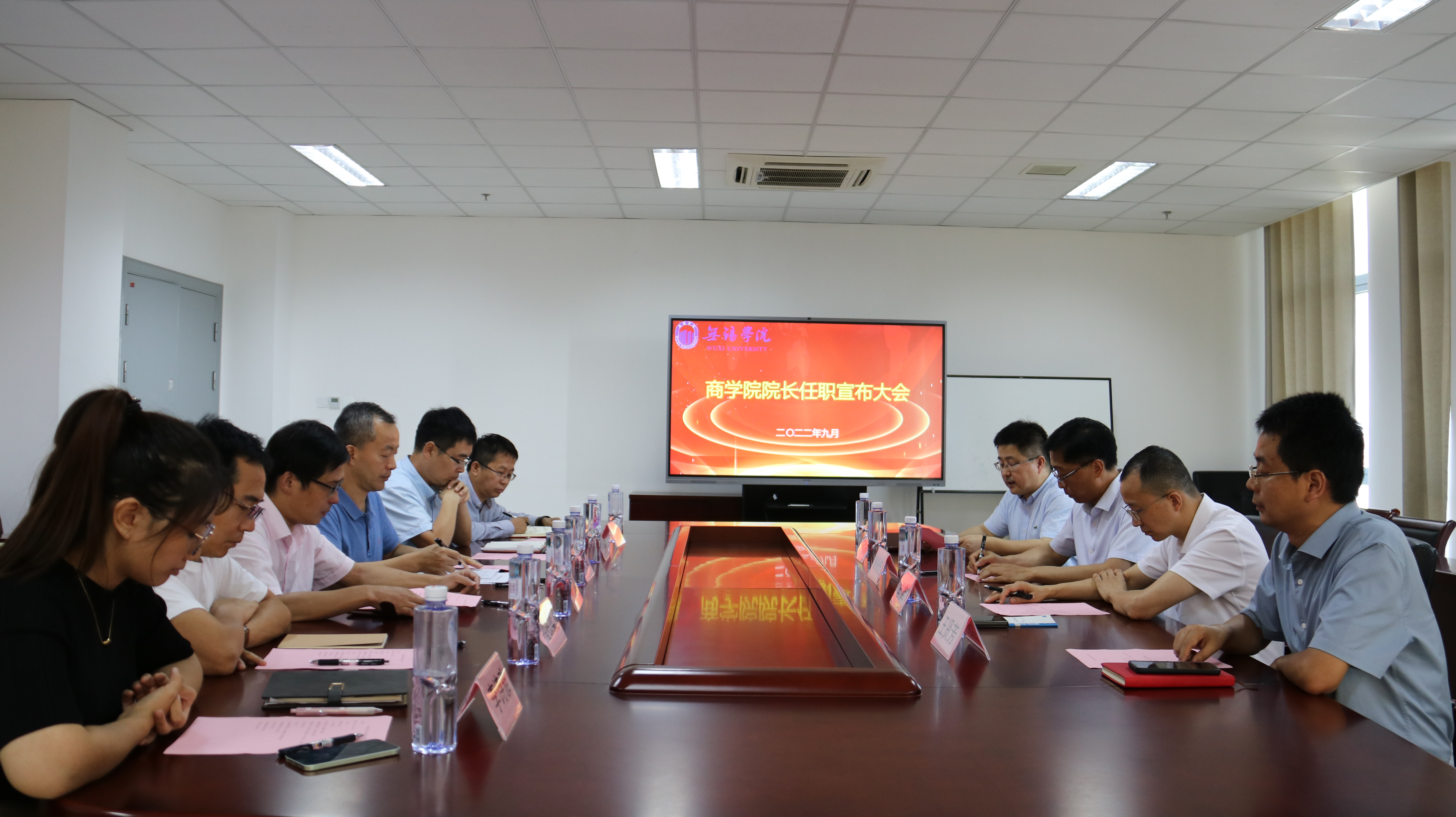 9月5日下午,学校在尚美楼504会议室召开商学院院长任职宣布大会。校长张永宏,校党委副书记匡辉出席会议。党委组织部、人事处、商学院负责人及商学院各系主任、教工支部书记、院办、学办全体人员等参加了会议。