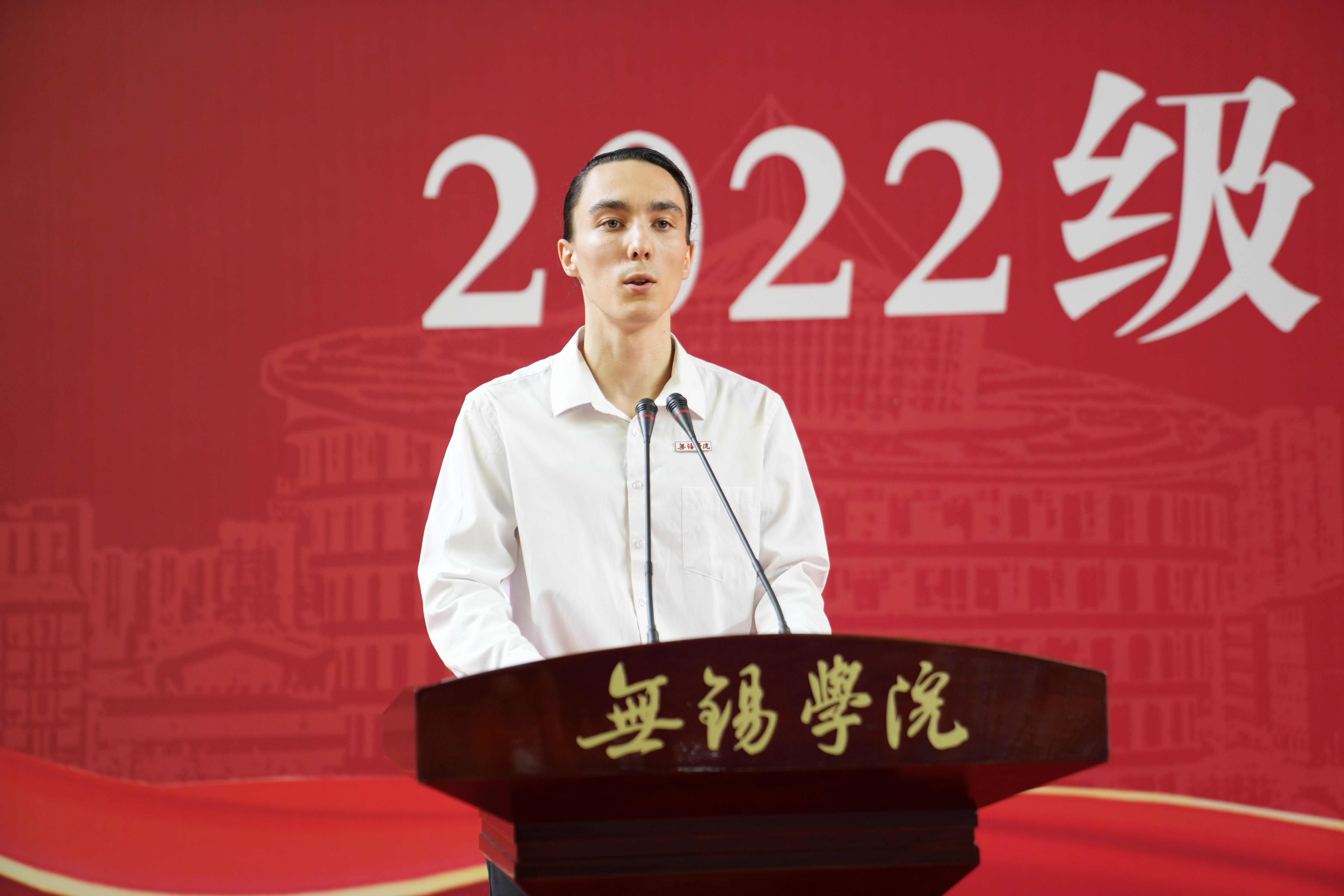 来自俄罗斯的2022级留学生新生邦彦作为留学生新生代表发言。他希望大家能够怀揣希望与梦想,积极探索、自主学习,培养实践意识、使命意识,不辱使命、不负韶华,努力书写属于自己的大学故事!