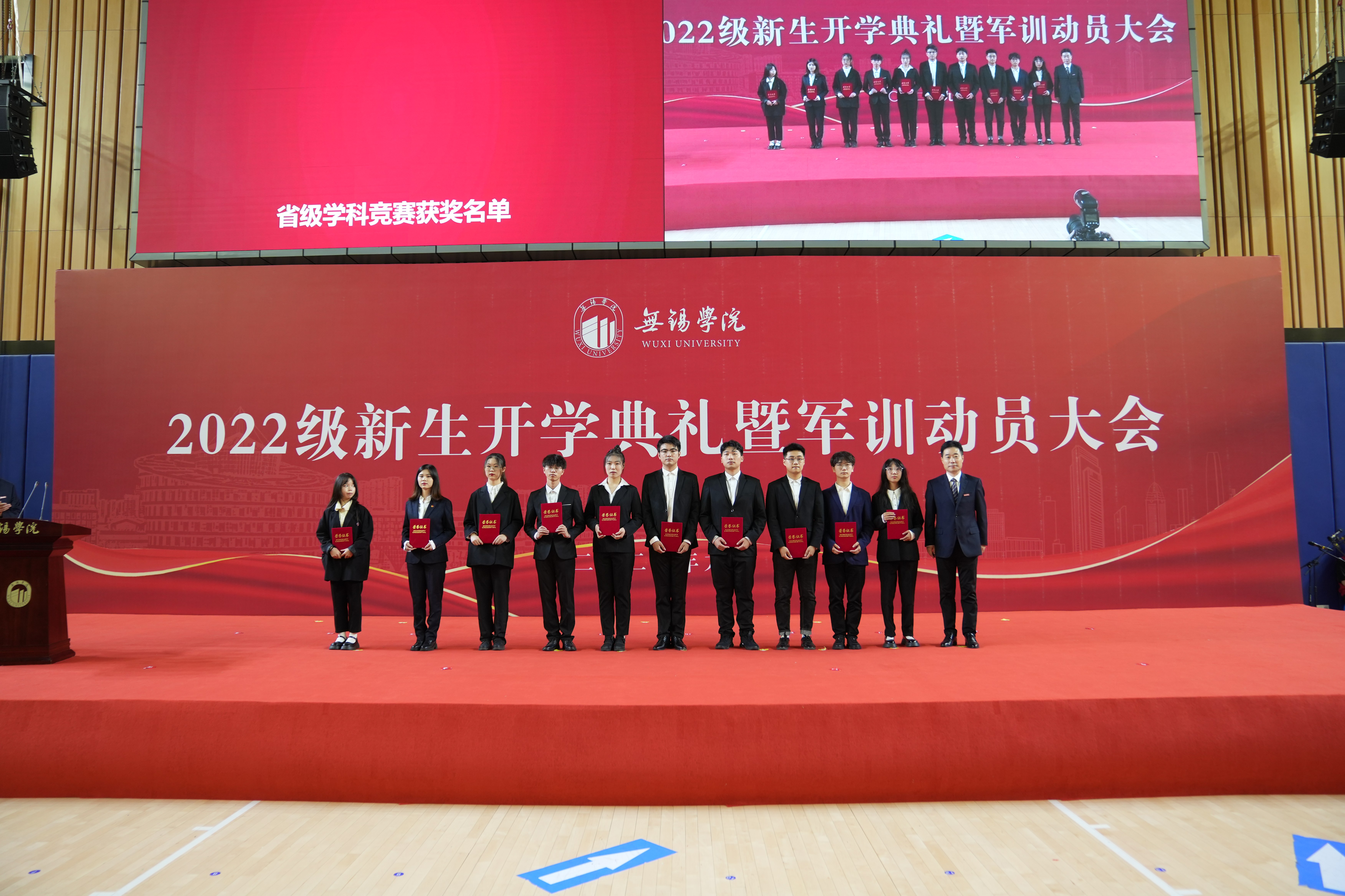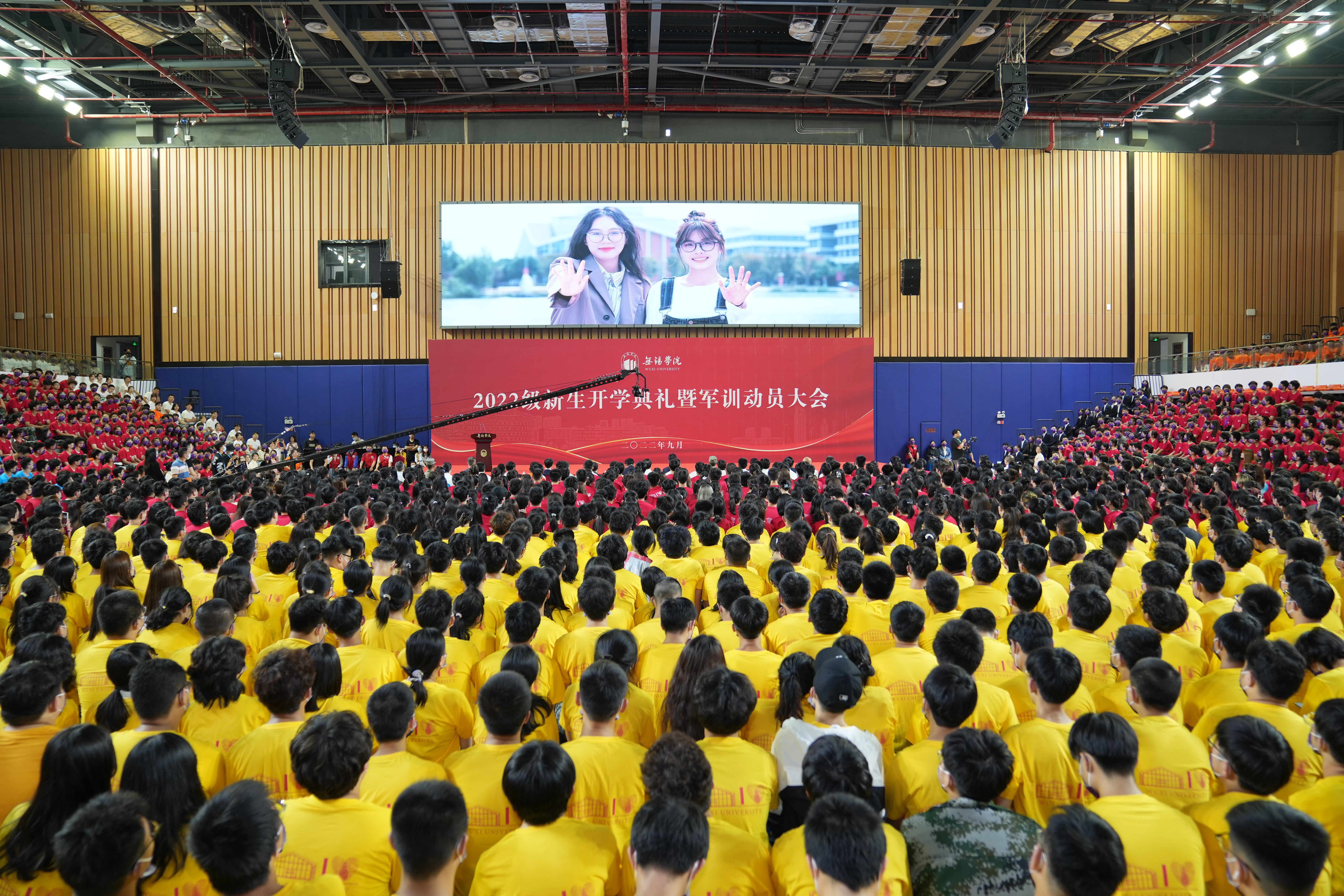 层林见秋色,明湖映天光。9月30日,2022级新生开学典礼暨军训动员大会在体育馆隆重举行。校领导杨建新、张永宏、匡辉、梁惠娥、曹广喜、王友明、胡剑凌、左同宇、徐军海,73676部队代表马登峰同志,各学院和职能部门负责人、部队承训教官、教师和在校生代表以及3300余名新生参加了开学典礼暨军训动员大会,大会由副校长左同宇主持。
