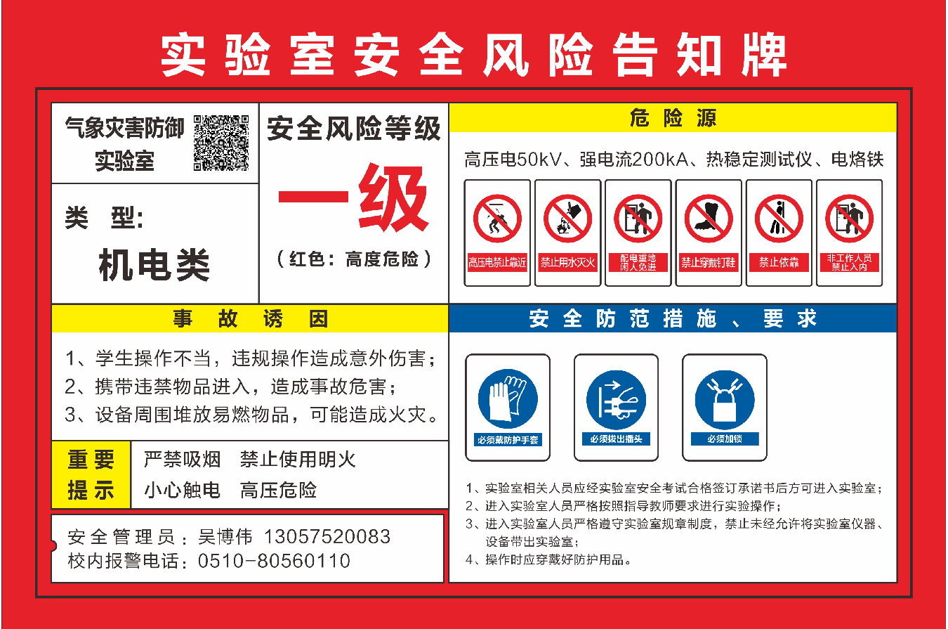 自主设计实验室安全风险告知牌(一级风险)