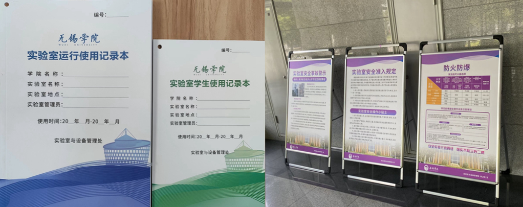 设计优化并更新实验室运行记录本、实验室学生使用记录本共计7500本,实验室日常巡检卡和巡检记录表2000余份;结合实例制作安全宣传展板27个,摆放于各教学楼进出口处,用于宣传实验室安全知识,提高师生安全意识。