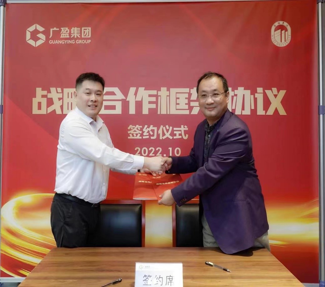郑云在致辞中对杨建新一行的到访表示热烈欢迎,并从公司业务布局、科研创新和实验室建设等方面对广盈集团做了简要介绍。他表示,广盈集团作为一家地方性企业,始终坚持服务地方,回馈社会,希望与我校加强合作,共谋发展,为地方经济的发展做出更大贡献。
