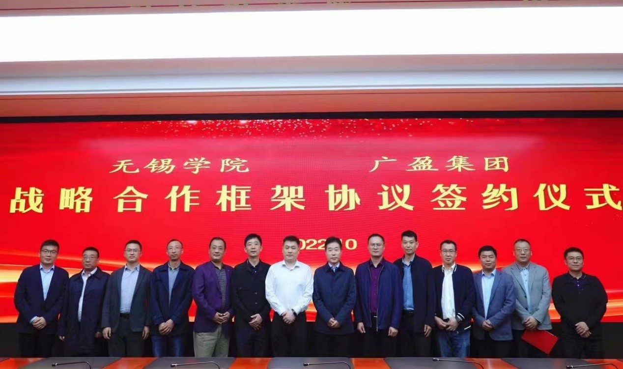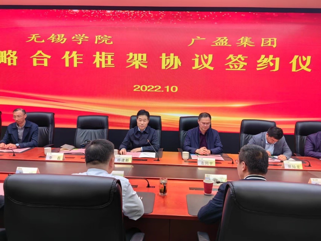 10月14日下午,我校与无锡广盈集团有限公司举行战略合作签约仪式。校党委书记杨建新、副校长左同宇,无锡广盈集团总经理郑云、副总经理周腾,以及双方相关职能部门与二级学院负责人等出席签约仪式。签约仪式由无锡广盈集团副总经理周腾主持。