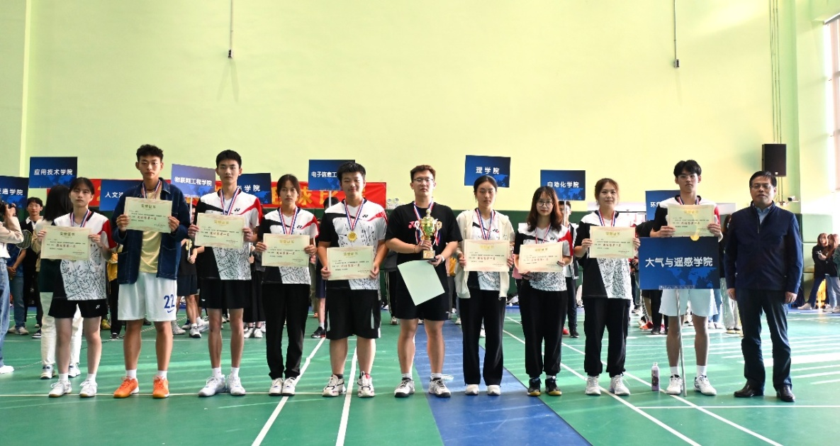 本次比赛历时两周,赛事分为单项赛和团体赛,共有12个代表队参赛,运动员共计300余人。经过280余场比赛的激烈角逐,大气与遥感学院、电子信息工程学院和物联网工程学院获得团体赛前三名;赵子泓、薛钰霖、黄一民三名同学获得男子单打前三名;姜兰兰、周琳惺、薛星琰三名同学获得女子单打前三名。运动员在比赛中斗志昂扬、全力以赴,以拼搏向上的精神,展现着当代大学生的风采。裁判员本着“公平、公正、公开”的原则,坚守岗位,认真执裁,保证了比赛的顺利开展。