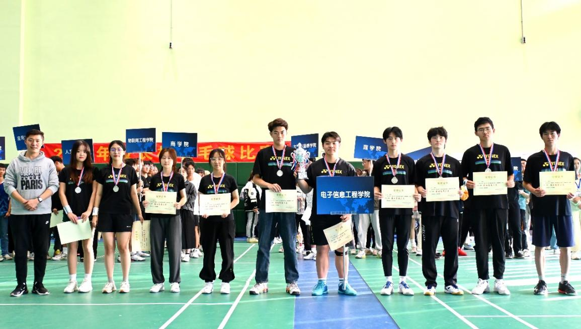 10月19日下午,我校2022年“校长杯”羽毛球比赛在体育馆圆满落幕。校党委常委、纪委书记王友明,校党委常委、副校长胡剑凌,体育部负责人宋巨华参加闭幕式并为获奖运动队颁奖。