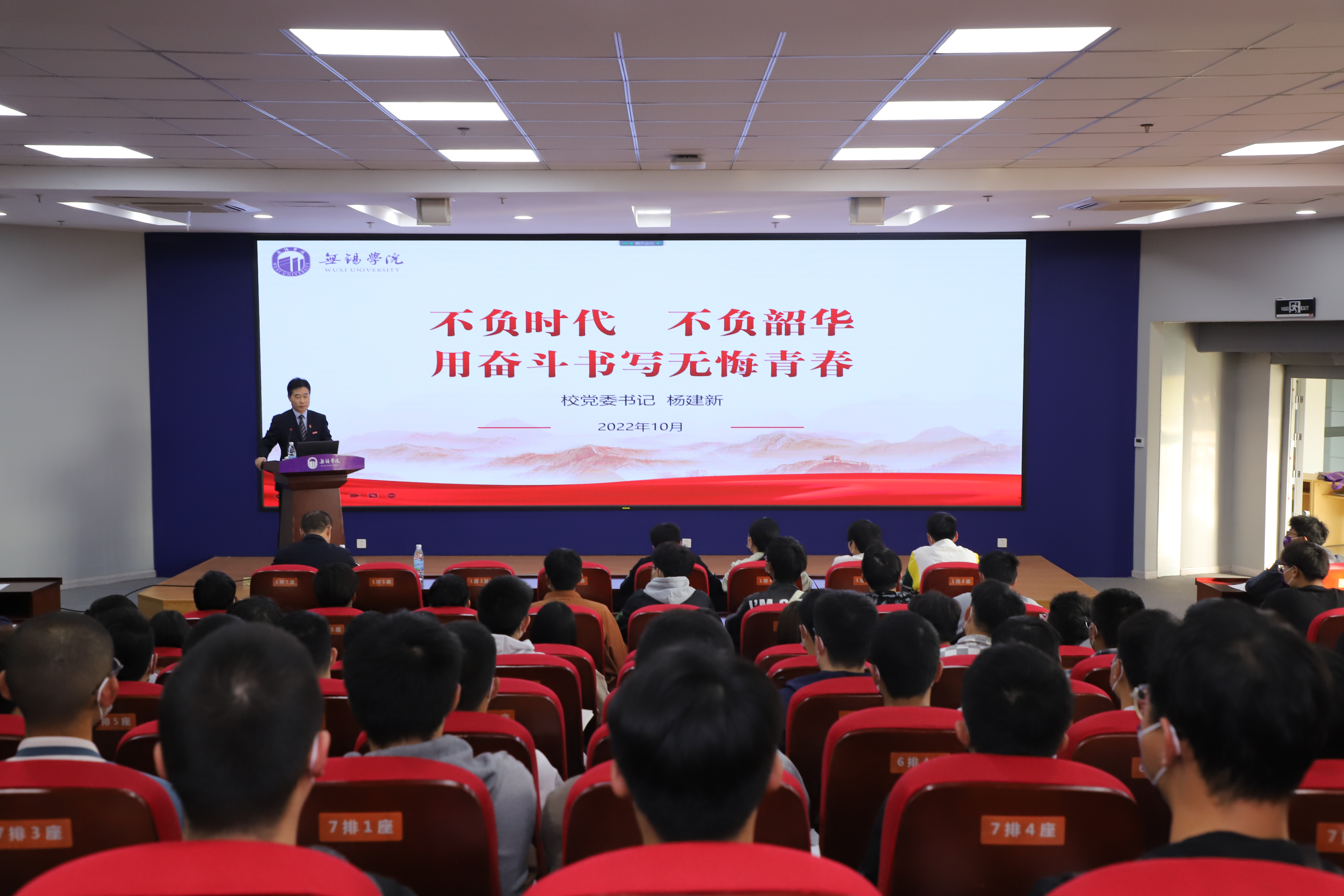 为学习宣传党的二十大精神,进一步引导2022级新生更好地适应大学环境,明确努力方向和奋斗坐标,扣好人生第一粒扣子,10月21日下午,校党委书记杨建新以“不负时代 不负韶华 用奋斗书写无悔青春”为题,给2022级新生讲授开学第一课。本次活动主会场设在科创楼205报告厅,各学院在教室、会议室等设分会场,全体2022级新生线上线下同上思政大课。