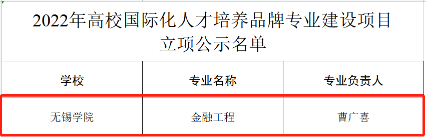 我校金融工程专业获批江苏省教育厅“十四五”高校国际化人才培养品牌专业建设项目。“十四五”高校国际化人才培养品牌专业建设项目是江苏省实施教育对外开放质量提升工程的重点建设专项,也是进一步贯彻落实国家关于扩大教育对外开放、推进教育提质增效的重要举措。依托中外合作办学和校际合作交流项目,我校将进一步推动国际化人才培养提质增效,健全完善国际化建设的协同工作机制,确保国际化人才培养品牌专业建设成效。