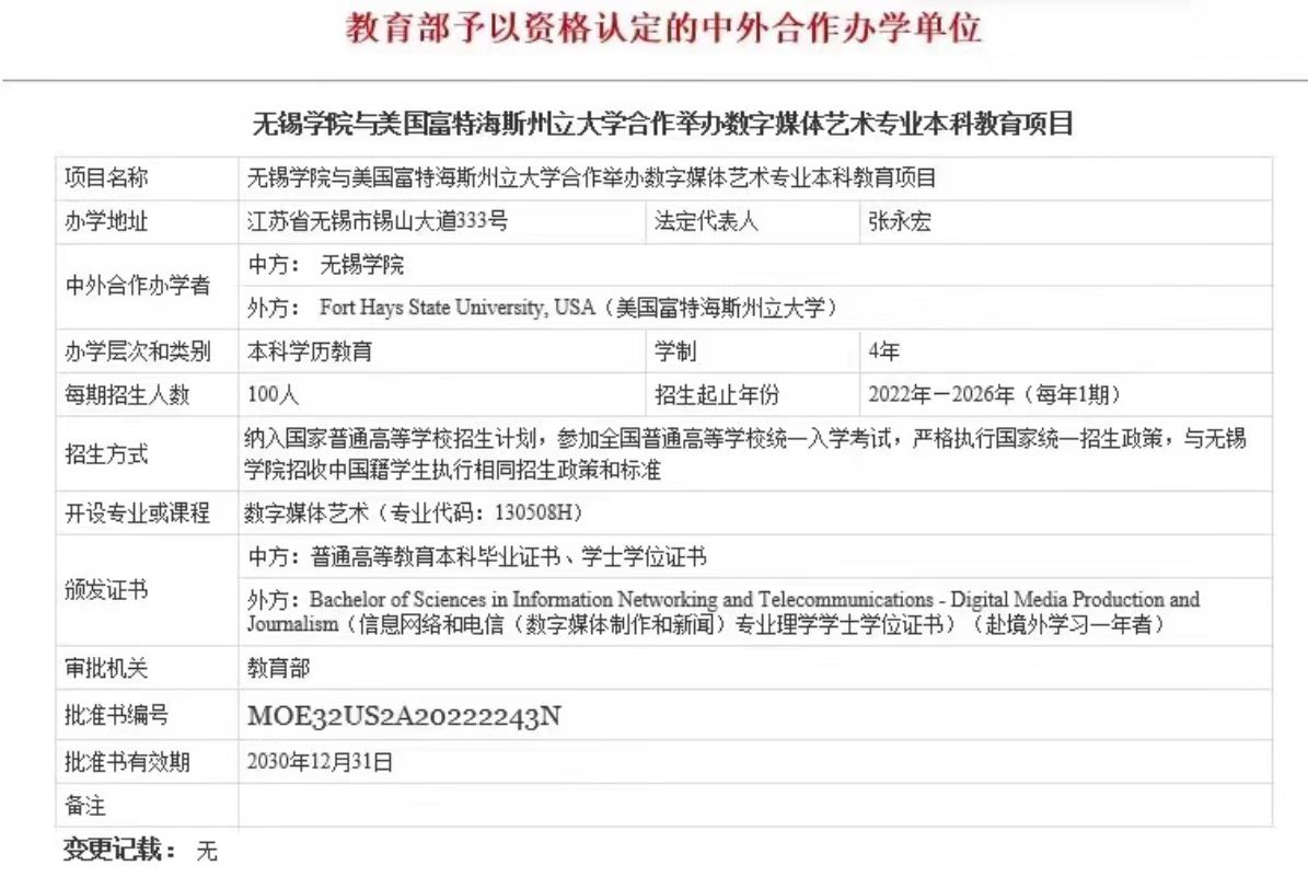 持续开拓与欧美国家高校的中外合作办学项目和国际合作交流项目,整合中外优势教育资源,探索、创新合作交流模式,与美国富特海斯州立大学合作举办的数字媒体艺术专业中外合作办学项目获教育部审批通过,已于今年9月份正式运营。细化、落实数字媒体艺术专业中外合作办学项目的各项工作, 与外方沟通联动,确保中外合作办学班的开学活动、教育教学、学生管理各项工作有序开展。