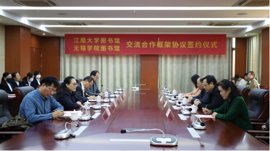 吴正国代表江南大学向无锡学院对江南大学的信任和支持表示感谢。他简要介绍了江南大学图书馆文献资源保障、情报信息服务等方面情况,并表示两校图书馆互有特色和优势,可合作的内容广、潜力大,期待在校际合作的基础上,深化在图书情报服务领域的具体合作。希望双方能够充分发挥图书馆第二课堂的育人功能,助力高校人才培养;携手推进业务建设,通过业务经验共享、先进技术共用、项目课题共研、区域中心共建、人员交流互派等方式促进图书馆服务管理水平提升;加强合作机制保障,发挥图书馆协同创新的示范作用;共同拓展服务地方的社会职能,推动地方科技经济社会发展。