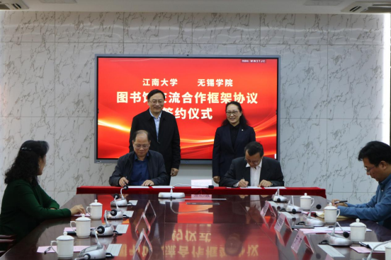 安杰与卢立新代表双方签署《江南大学图书馆、无锡学院图书馆合作交流框架协议》。