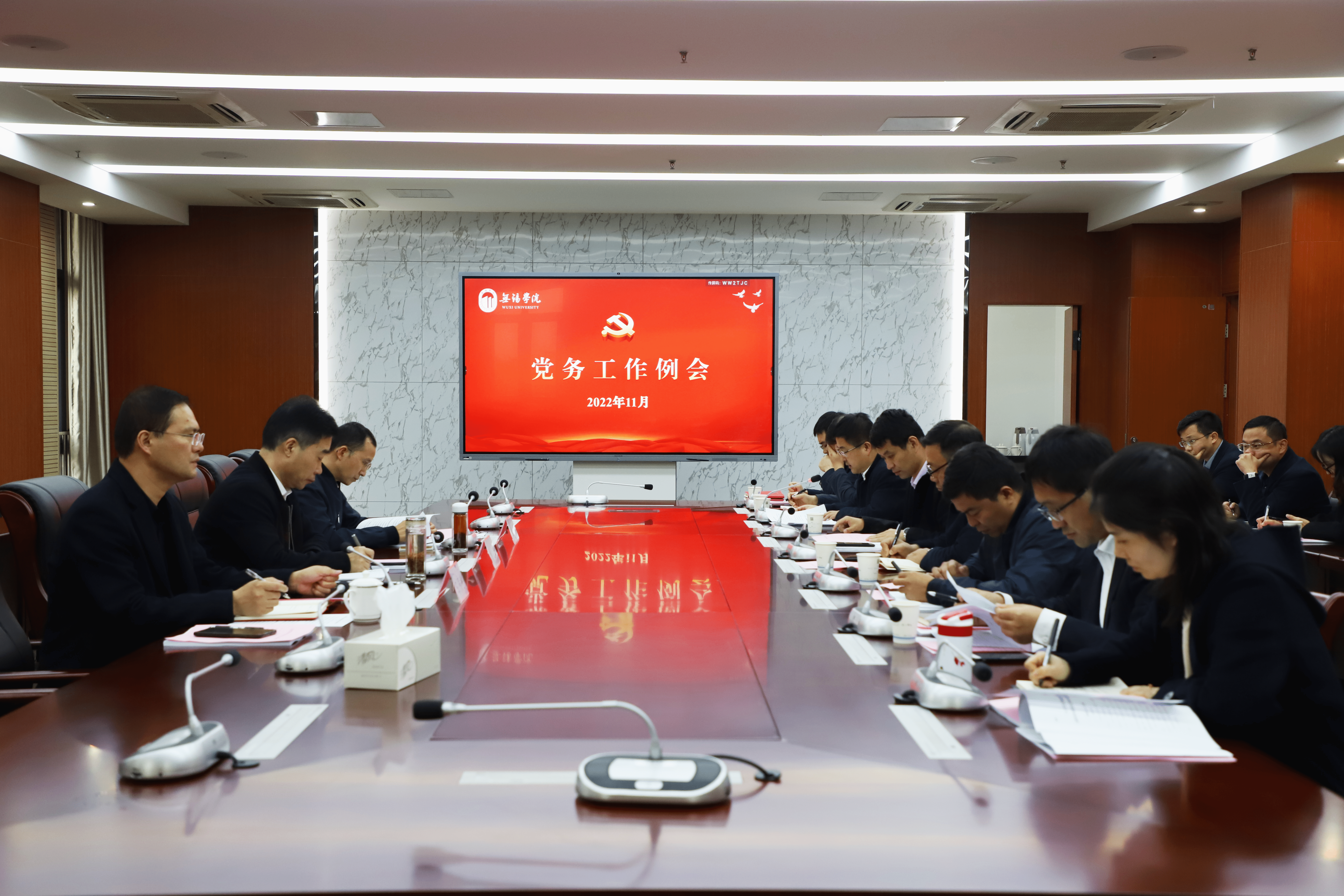 11月14日下午,我校在行政楼327会议室召开党务工作例会。校党委书记杨建新,党委副书记匡辉,副校长左同宇及各党群部门负责人、党总支负责人参加会议。会议由匡辉主持。