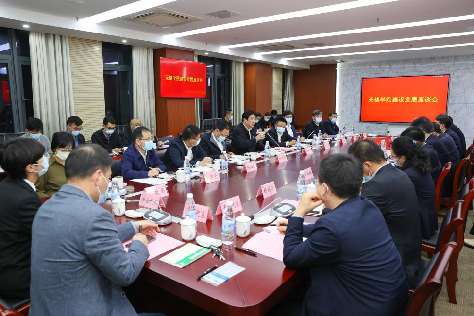 在随后召开的专题座谈会上,校党委书记杨建新、校长张永宏向无锡市委、市政府长期以来给予学校的支持和帮助表示衷心感谢。杨建新从坚持突出理论宣讲这一“关键动作”,突出领导干部这一“关键少数”,突出青年师生这一“关键受众”,突出知行合一这一“关键导向”这四个方面汇报了学校学习宣传党的二十大精神情况。张永宏从2022年发展成效、当前重点工作出发,简要汇报了学校建设情况及需协调支持事项。他们表示,学校始终坚持以党建引领内涵发展,在学科专业布局优化、学科建设、师资建设、人才培养等方面持续发力,扎实做好学校事业发展各项工作,不断推动学校高质量发展,努力为无锡地方经济社会发展作出新的更大贡献。