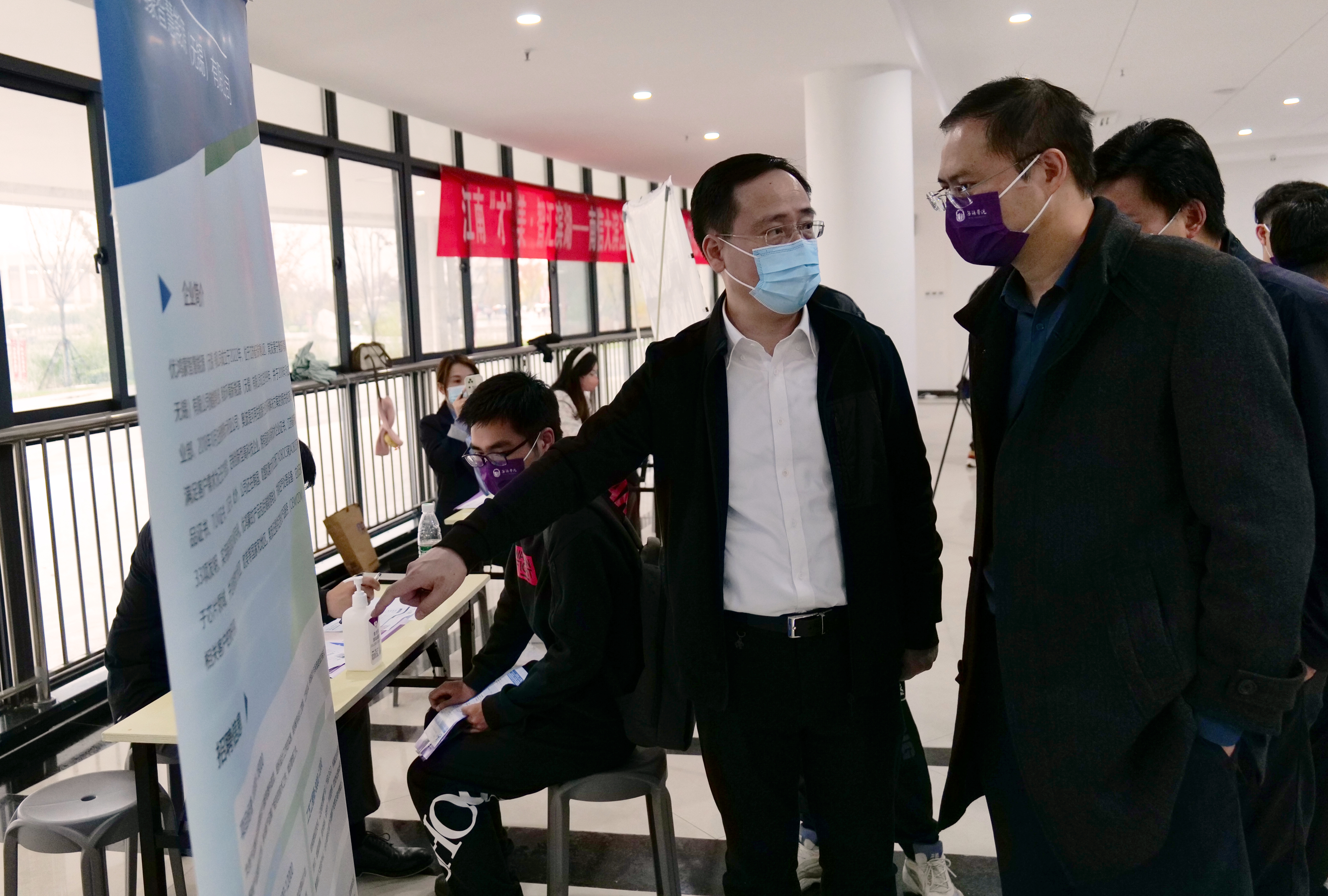 11月28日下午,我校在大学生活动中心举办了“江南‘才’美 智汇滨湖”专场招聘会。校党委常委、副校长左同宇,无锡市滨湖区人力资源和社会保障局局长秦文荣及相关职能部门负责人到场指导并与用人单位和毕业生交流。