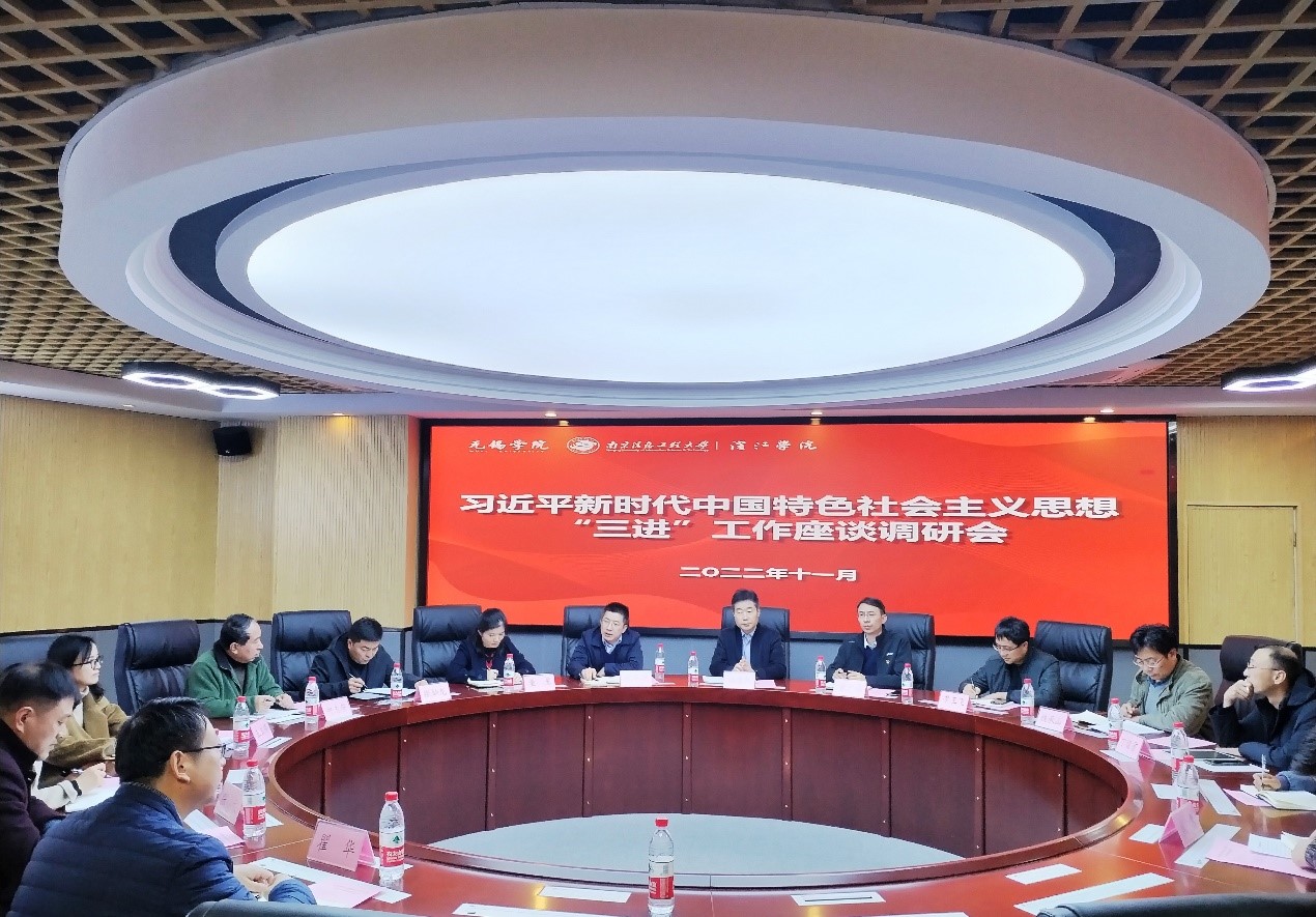 11月30日下午,我校在科创楼202会议室召开习近平新时代中国特色社会主义思想“三进”工作座谈调研会,校党委书记杨建新,副校长曹广喜、徐军海出席会议。相关单位负责人及教师代表参加会议。会议由曹广喜主持。
