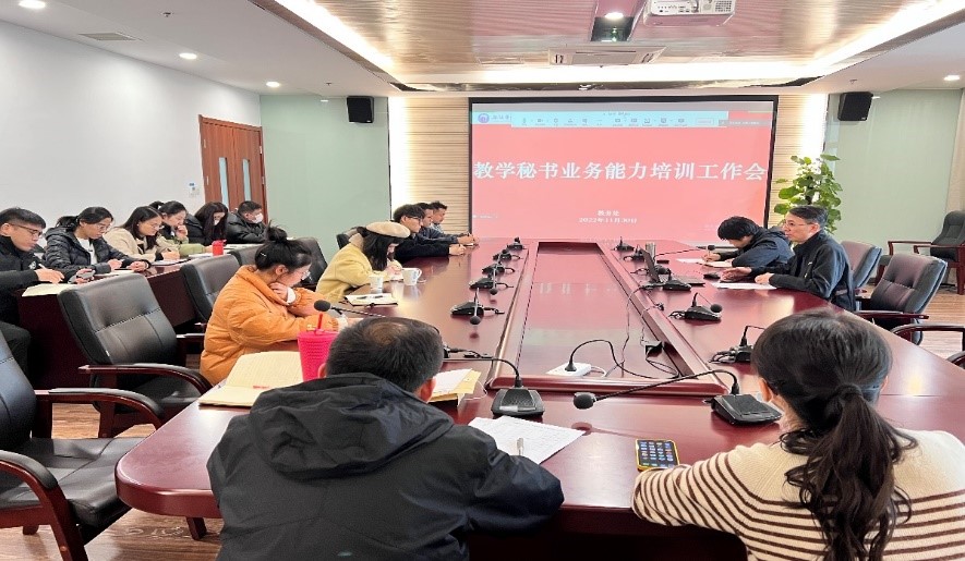 为进一步提升我校教学服务管理水平,增强教务员(教学秘书)队伍的业务水平和履职能力,更加优质高效服务广大师生,11月30日,教务处按照学校工作部署,精心筹划,组织开展了本学期教务员业务培训会。副校长曹广喜出席并讲话,各教学单位教务员及教务处工作人员参加培训。会议由教务处分管负责人裴晓芳主持。