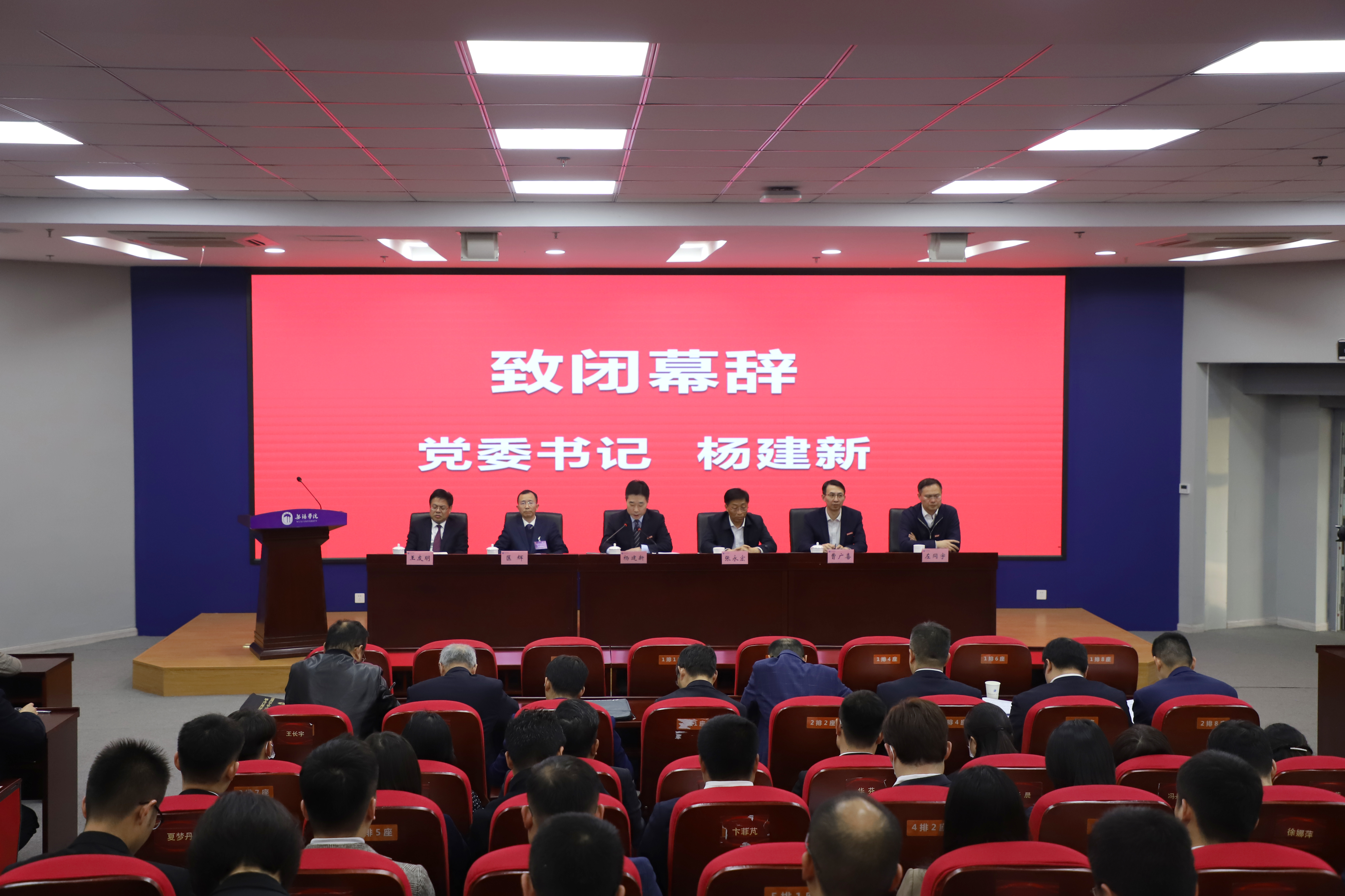 校党委书记杨建新致闭幕词。他代表学校党委行政,向莅临大会的领导和与会代表致以诚挚问候。他指出,本次大会充分发扬民主,严格依法办事,组织严谨、会风严正、程序严密,充分体现了与会代表们强烈的爱校情怀、荣校愿望和兴校担当,切实反映了广大师生对学校高质量发展的新期盼、新要求。