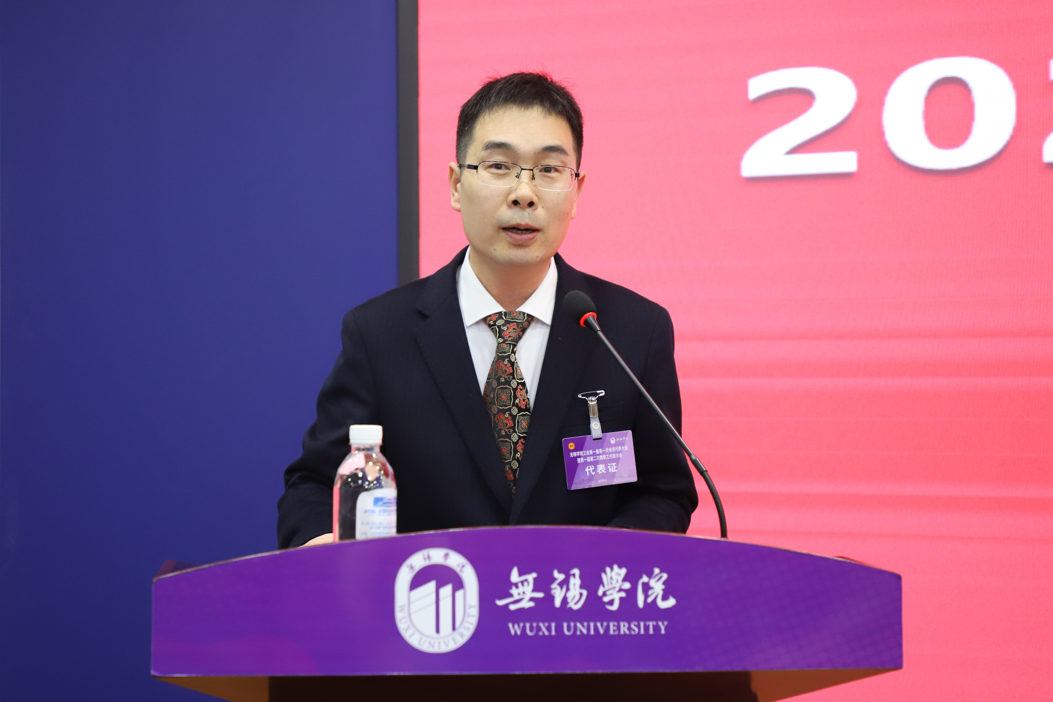 大会开幕式由校长张永宏主持。无锡市总工会党组书记、副主席吴涛上台致辞。他向大会的召开表示热烈祝贺,对近年来学校高质量发展的办学成果和生动实践给予充分肯定,并对学校工会工作提出三点建议,一是牢记“国之大者”,切实提高工会组织的政治判断力、政治领悟力、政治执行力;二是把握时代要求,自觉把工会工作放到党和国家工作大局中去谋划推进;三是增强职工意识,努力提升新时代工会工作的能力和水平。