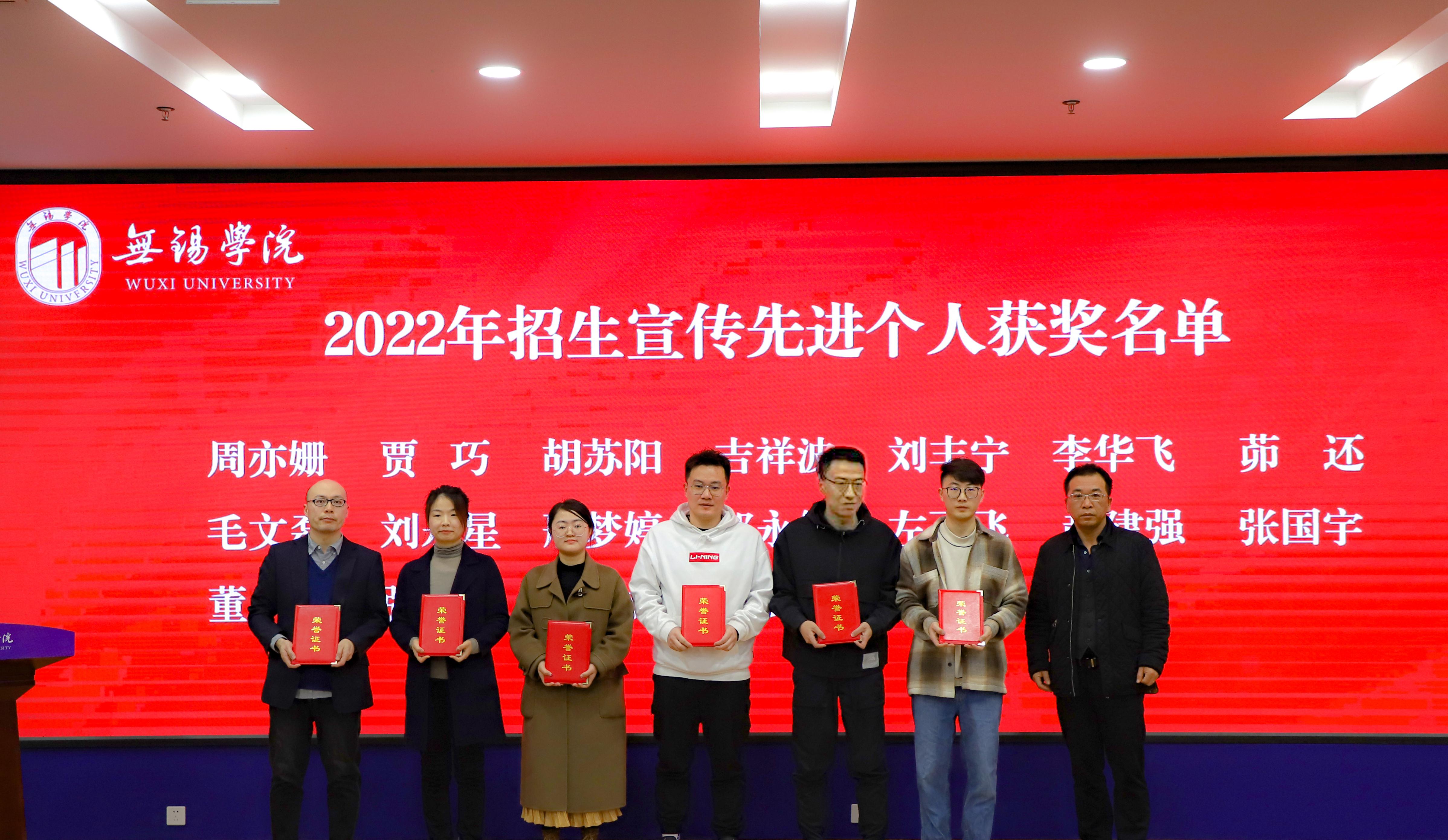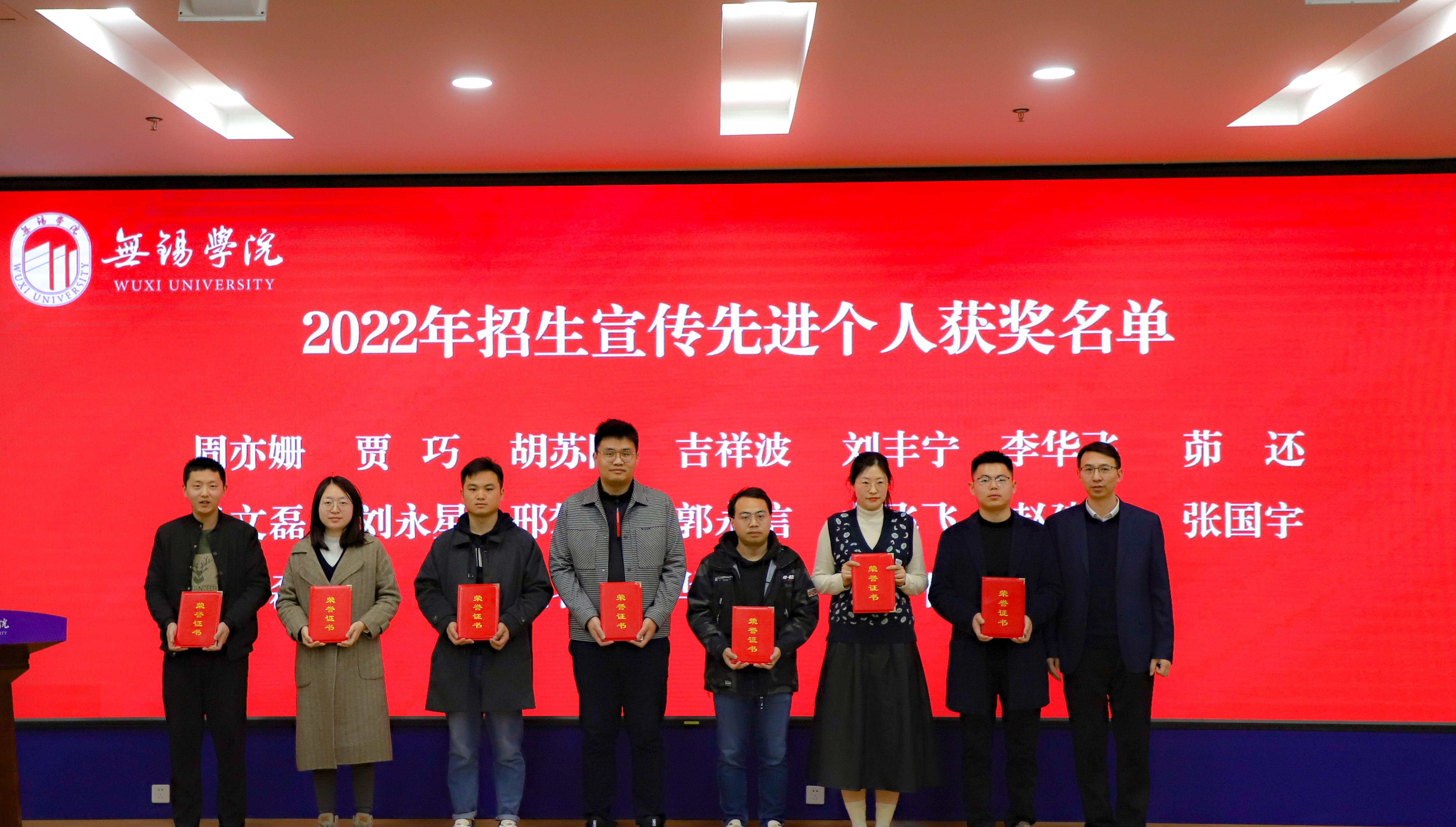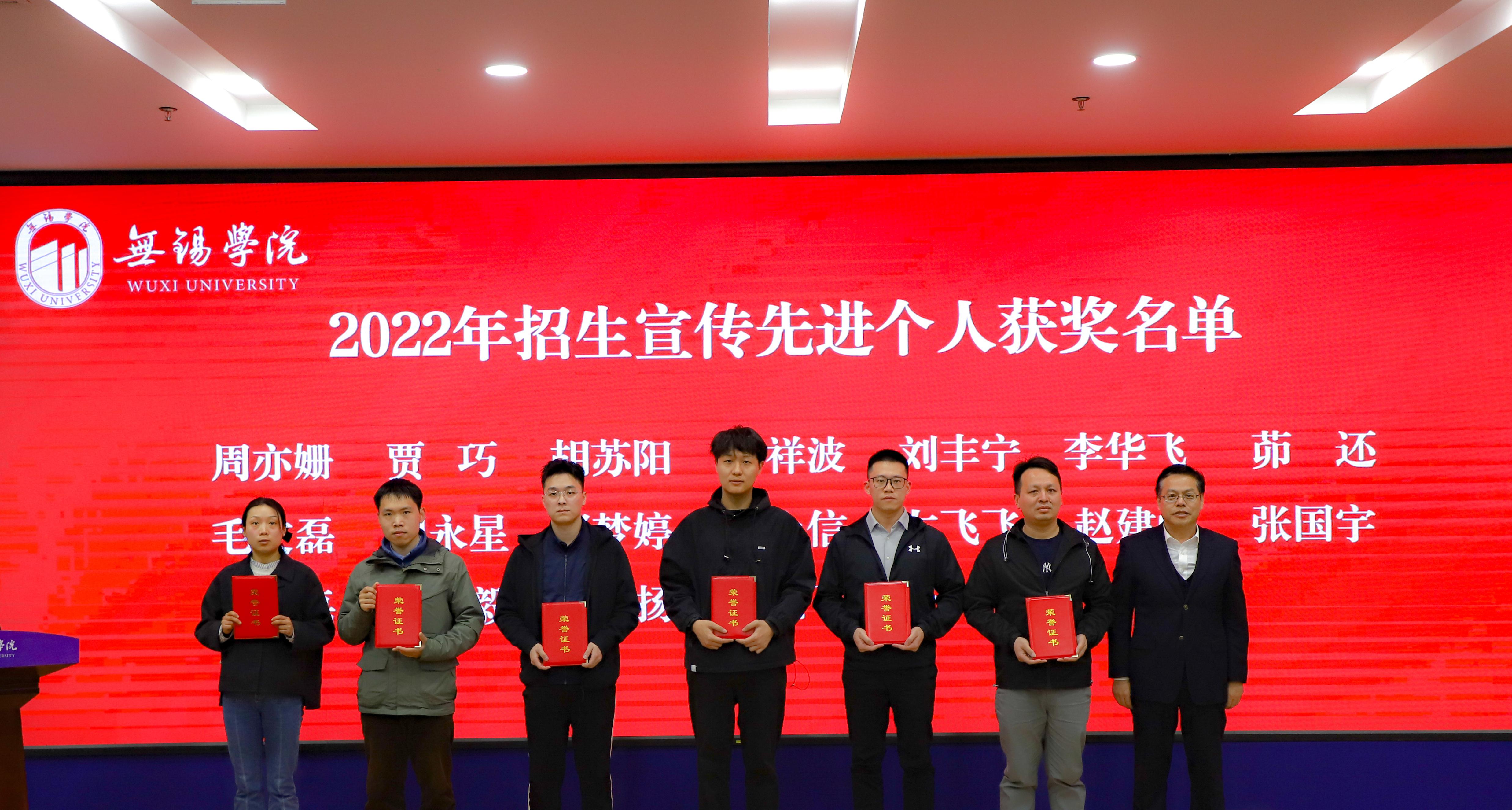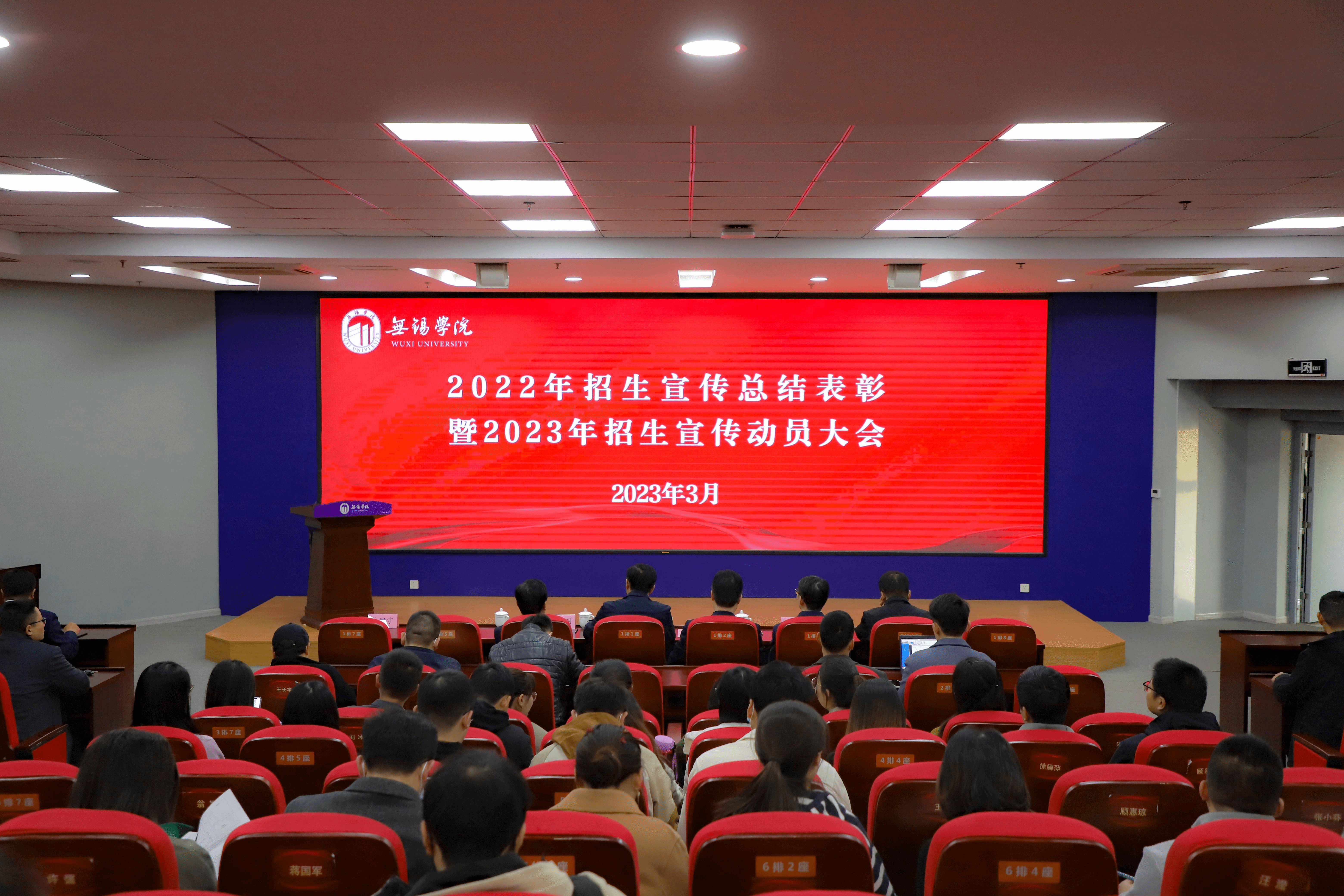 为认真总结我校2022年招生宣传工作经验,表彰过去一年在招生宣传工作中表现突出的先进集体、先进个人,并对2023年招生宣传工作做动员和部署,3月7日上午,无锡学院2022年招生宣传总结表彰暨2023年招生宣传动员大会在科创楼205报告厅举行,校党委书记杨建新,校长张永宏,党委常委、副校长曹广喜,党委常委、纪委书记王友明,党委常委、副校长胡剑凌,党委常委、副校长左同宇出席会议,各二级学院院领导、全体辅导员及招生宣传骨干人员参加会议,会议由左同宇主持。