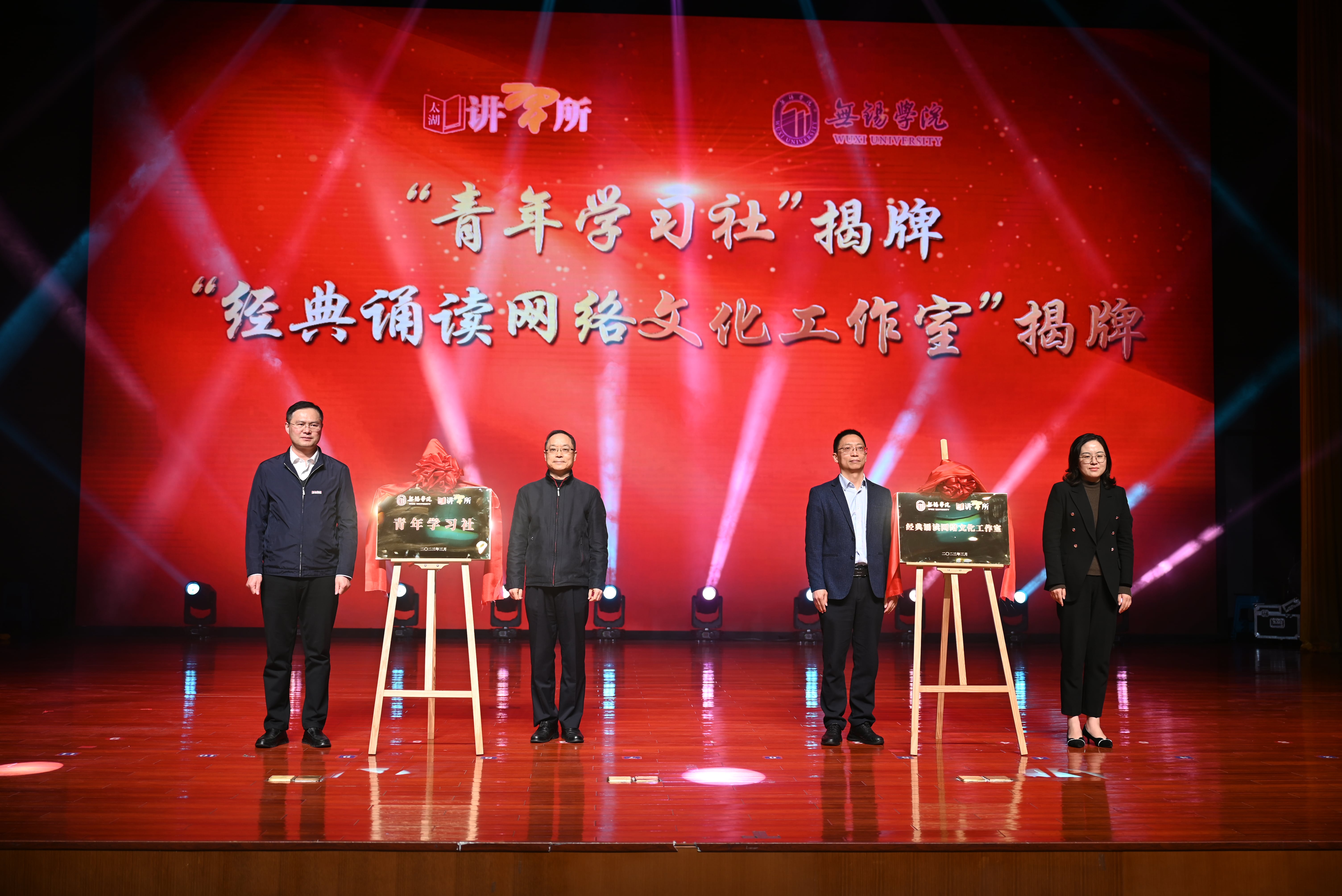 活动中,无锡学院“太湖讲习所—青年学习社”、无锡学院“太湖讲习所—经典诵读网络文化工作室”揭牌,无锡市互联网行业“e企学习”讲师团名单发布。我校“锡望新时代”理论宣讲团成员卢艳还带来了一堂以《中国式现代化道路上的无锡新实践》为题的思政微课;经典诵读网络文化工作室带来了《赓续红色百年 澎湃奋进力量》诵读节目。