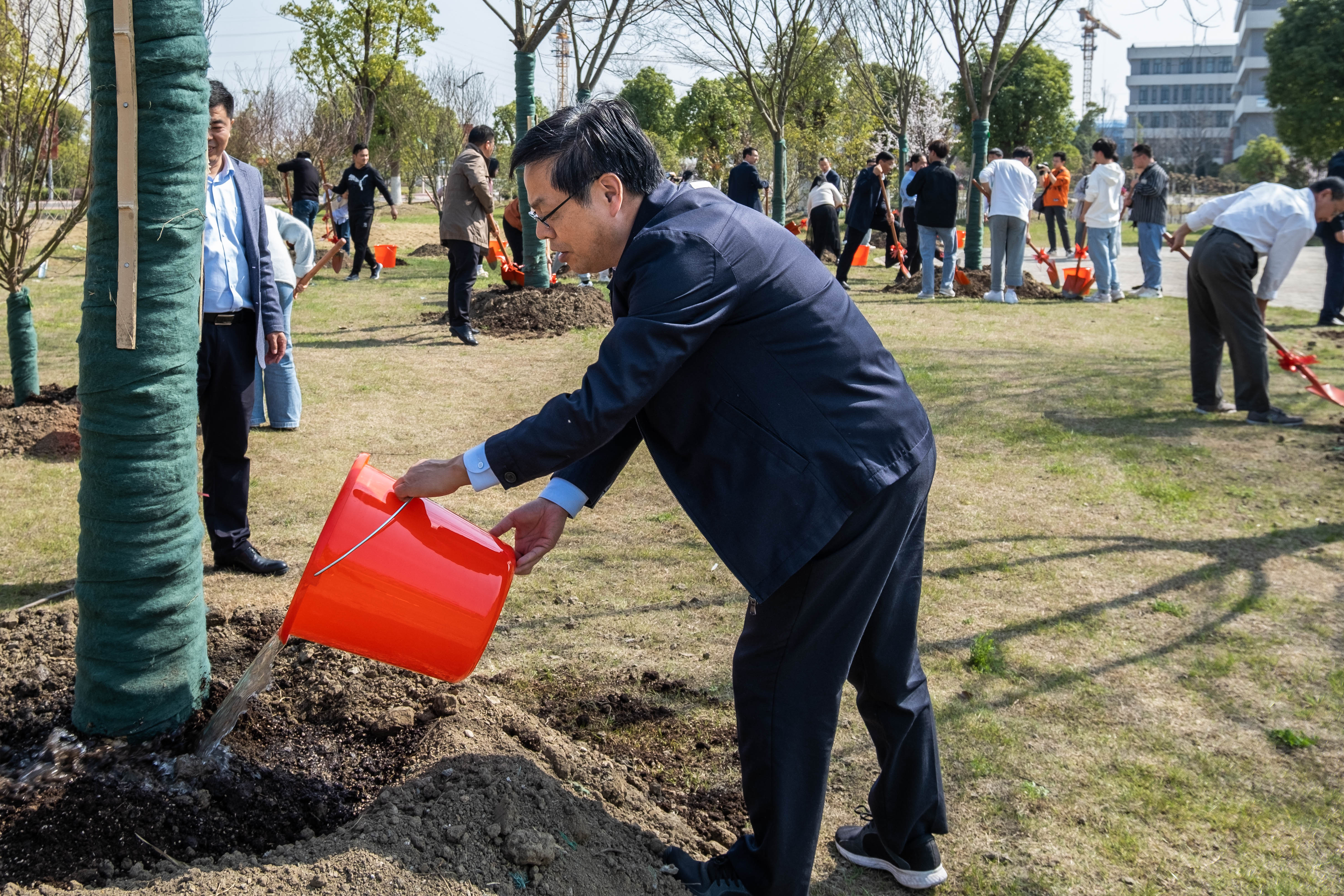 春回大地,万物复苏。3月10日下午,值全国第45个植树节来临之际,我校在溢思园开展了以“我为学校添绿色”为主题的植树节活动。校党委书记杨建新,校党委副书记、校长张永宏,校党委副书记匡辉,副校长曹广喜,校纪委书记王友明,副校长胡剑凌及党委院长办公室、学生工作处、后勤管理处、轨道交通学院等部门师生代表50余人参与了本次活动。