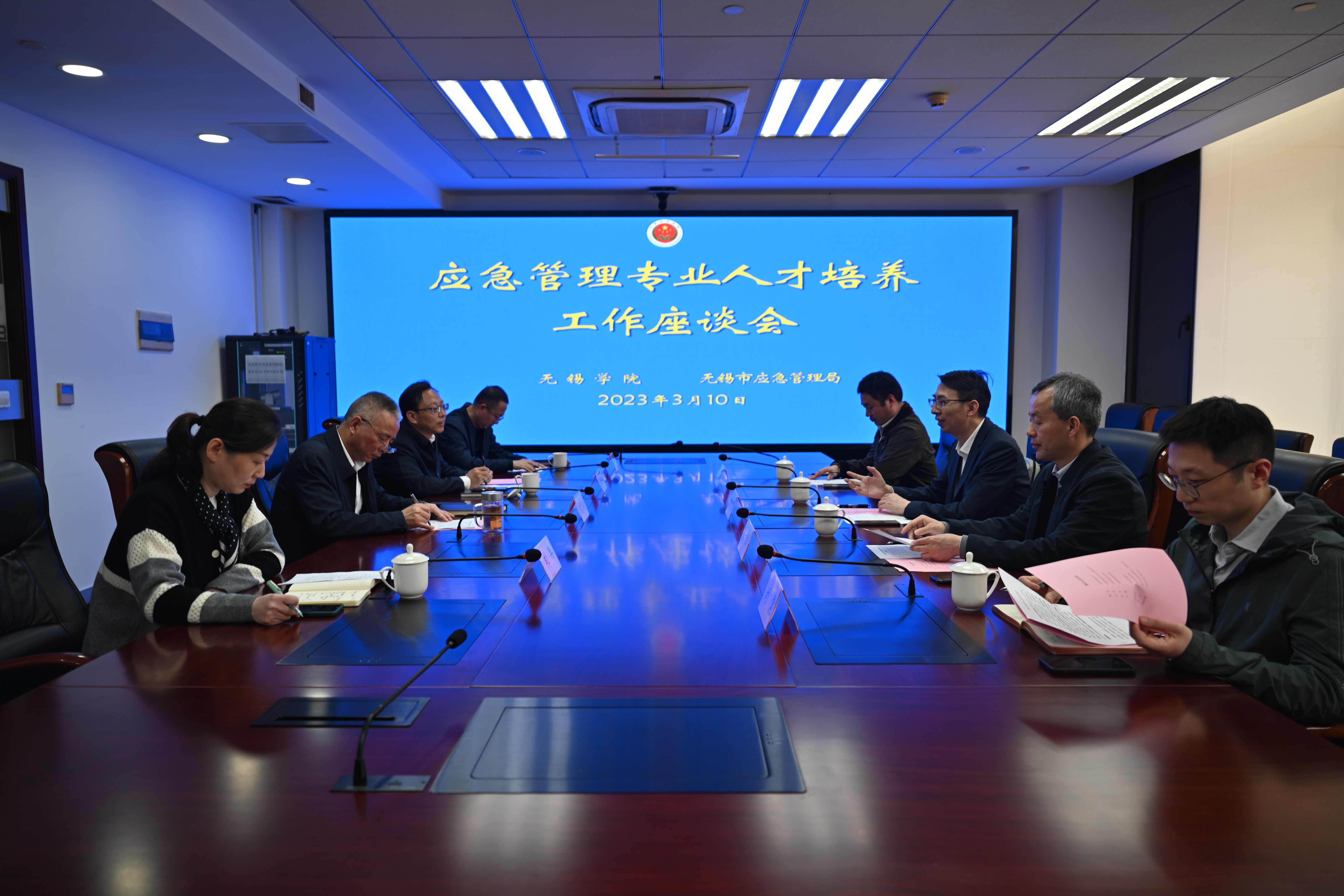 为深入贯彻落实教育部“应急安全智慧学习工场”项目建设要求,更好地服务无锡应急管理事业发展,3月10日上午,副校长曹广喜一行赴无锡市应急管理局开展调研交流。无锡市应急管理局局长陈荣明、副局长胡才鸿、宣教处处长刘兵、人事处处长陆延龄,无锡学院数字经济与管理学院院长刘军、院长助理孙宁、刘震参加会议。