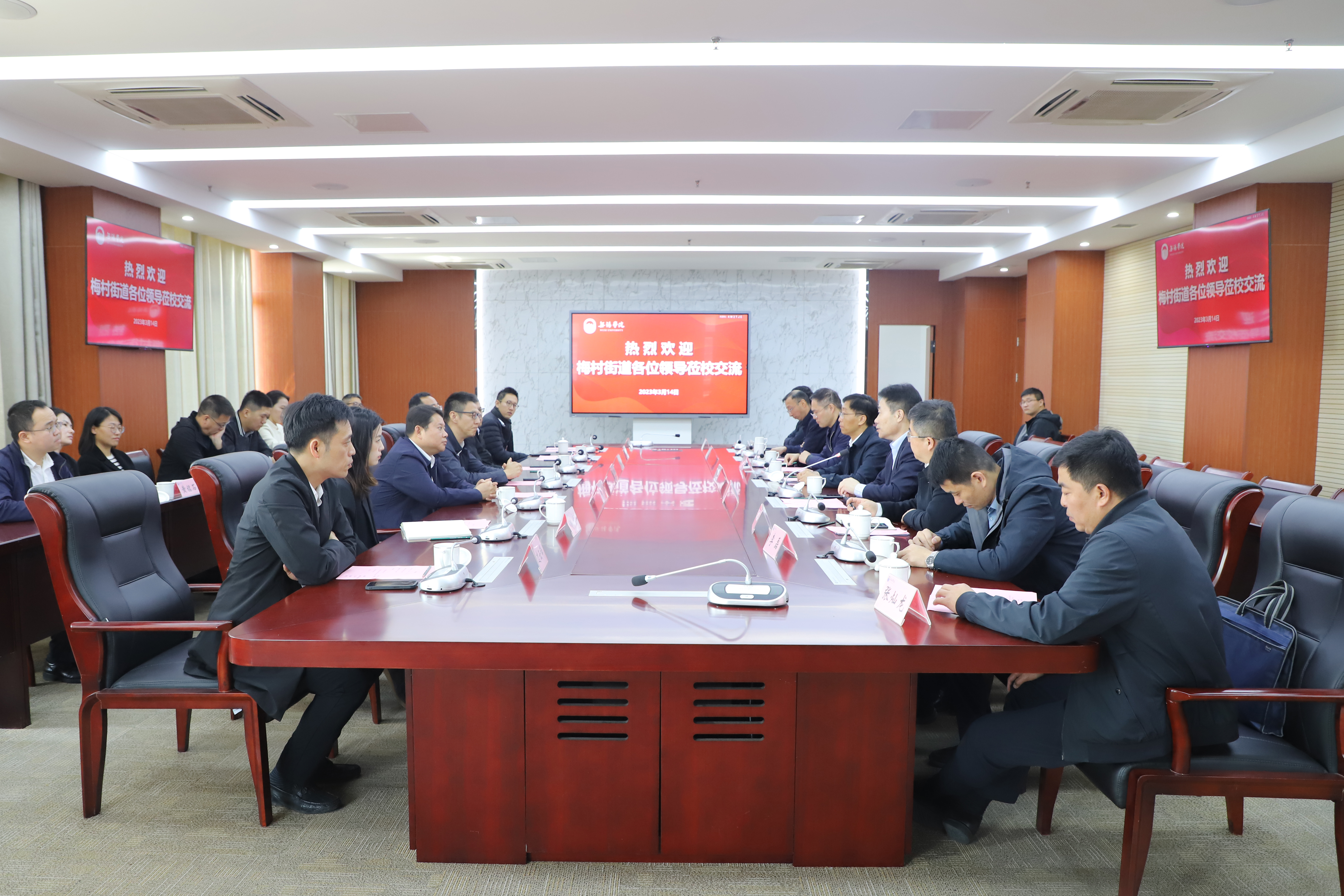3月14日上午,梅村街道党工委书记朱冬青,党工委副书记、办事处主任高前锋一行来我校考察交流。校党委书记杨建新、校长张永宏、副校长左同宇及相关职能部门负责人参加调研。会议由左同宇主持。