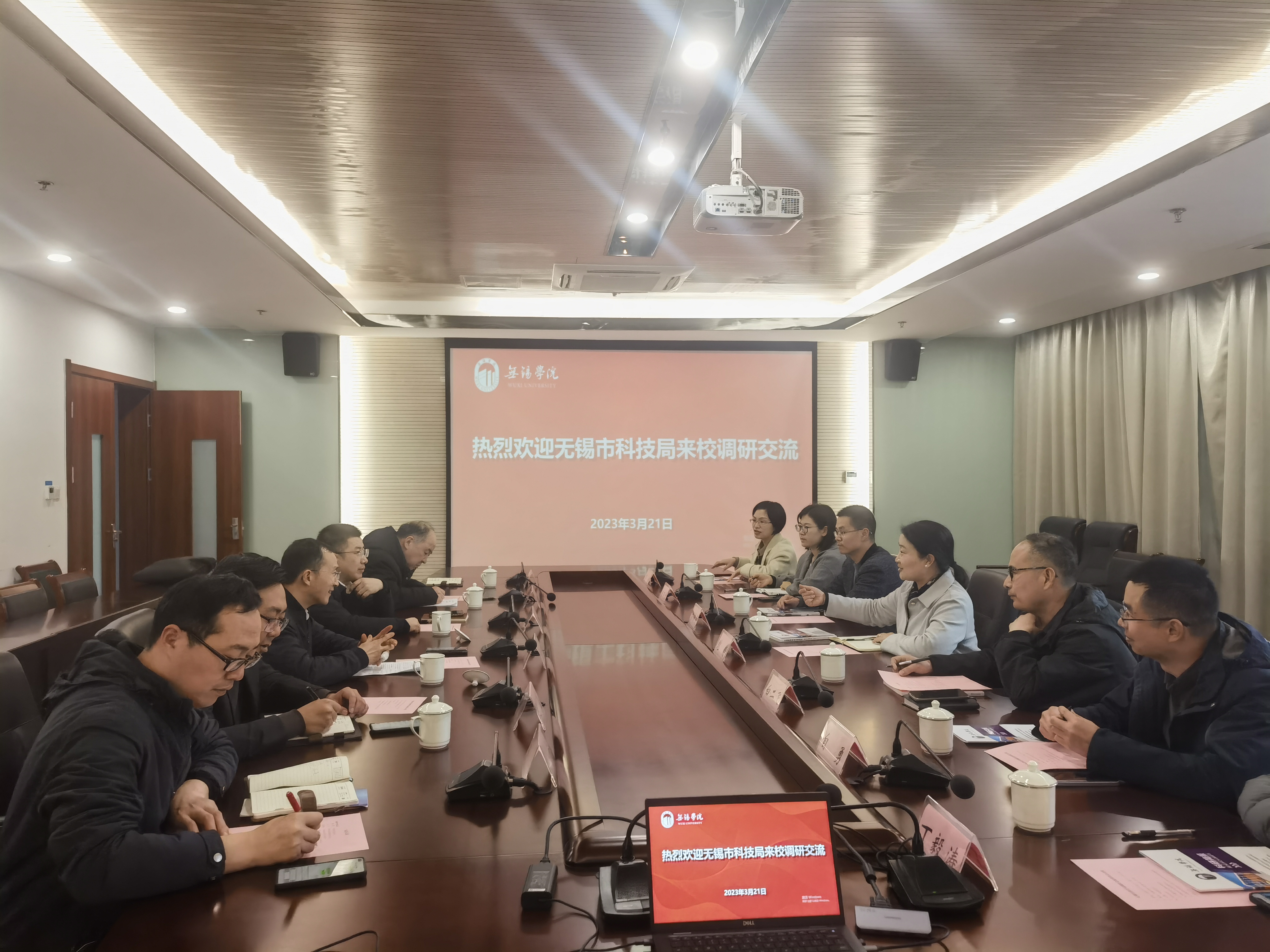匡辉副书记对鲍静副局长一行的到来表示热烈欢迎,感谢市科技局近年来对我校发展的关心和支持,并简要介绍了我校目前在科技创新、校企合作、服务地方等方面取得的成绩。徐军海副校长重点介绍了近期我校在科研团队建设、重点实验室申报、大学科技园迎评整改等方面的工作安排,表达了进一步加强与无锡市科技局在人才培养、局校合作、科学研究等领域加强合作的意愿。