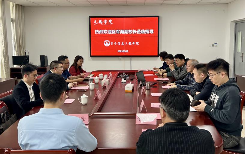 为推动学校科研工作高质量发展,深化实施无锡学院产教融合‘1+5’战略工程,4月11日下午,副校长徐军海带领科技处一行赴电子信息工程学院调研交流。电子信息工程学院负责人郭业才及相关专任教师出席会议。