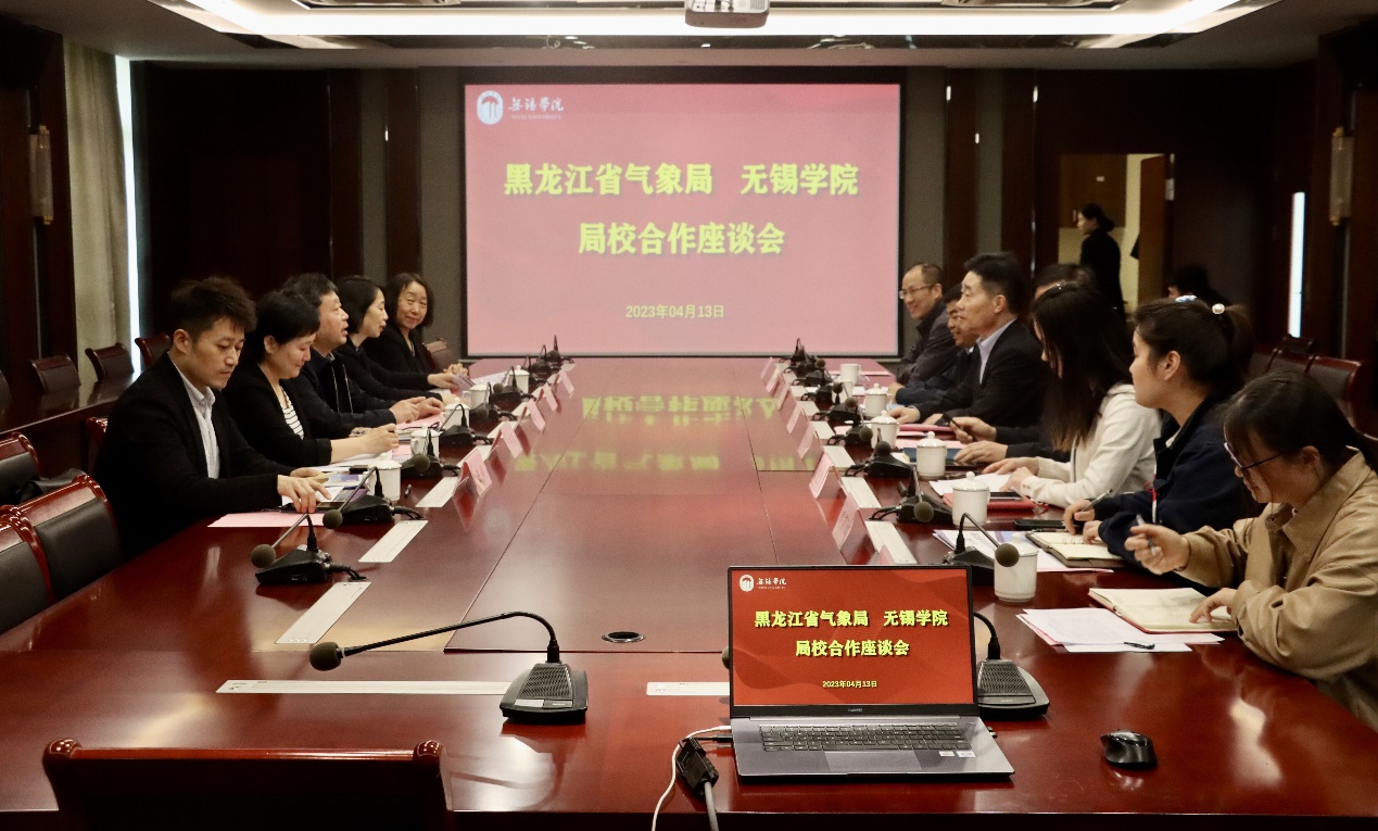 杨建新对黑龙江省气象局一行来校表示了热烈的欢迎,并介绍了我校在师资队伍、人才培养、科学研究、服务地方等方面的举措和成绩。他指出,我校依靠无锡特色产业优势,坚持“开放发展、协同发展、特色发展”的办学理念,持续推动学校高质量发展,气象相关专业作为我校的传统特色专业,近年来实现了快速发展,希望能够进一步加强局校合作,提升人才培养和供需对接水平。