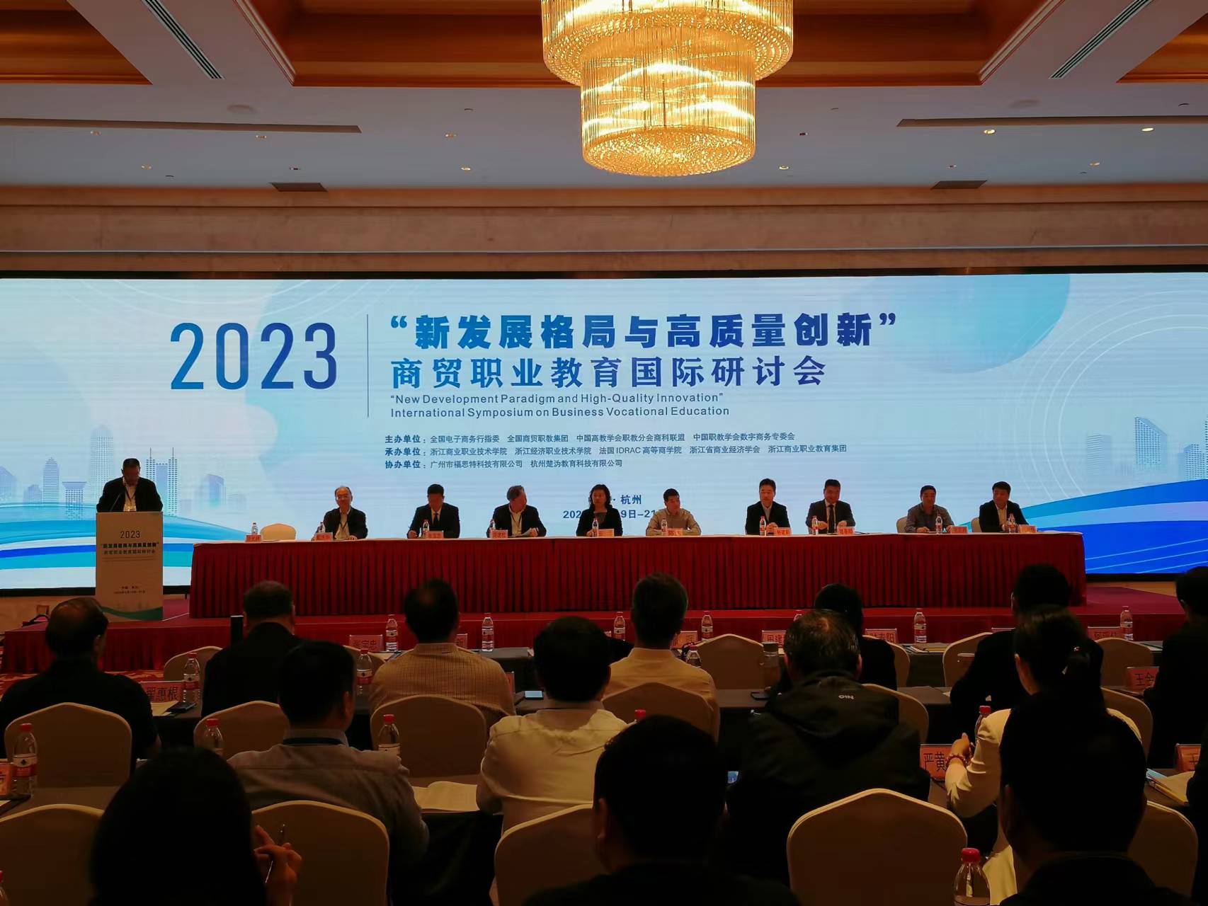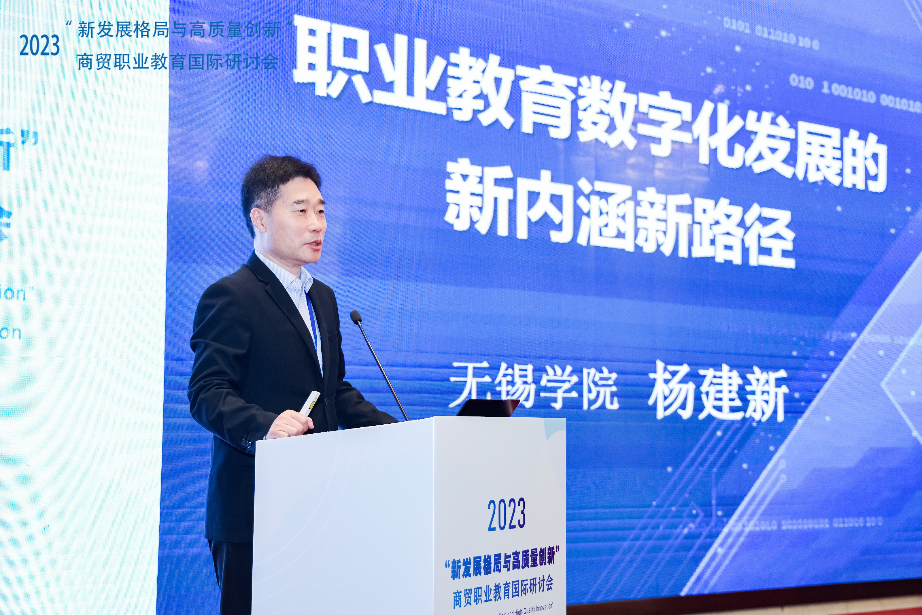 4月20日,由全国电子商务行指委、全国商贸职教集团、中国高教学会职教分会商科联盟与中国职教学会数字商务专委会主办的“新发展格局与高质量创新”商贸职业教育国际研讨会在杭州召开。校党委书记杨建新参加会议,并作了题为“职业教育数字化发展的新内涵新路径”的大会主旨报告。