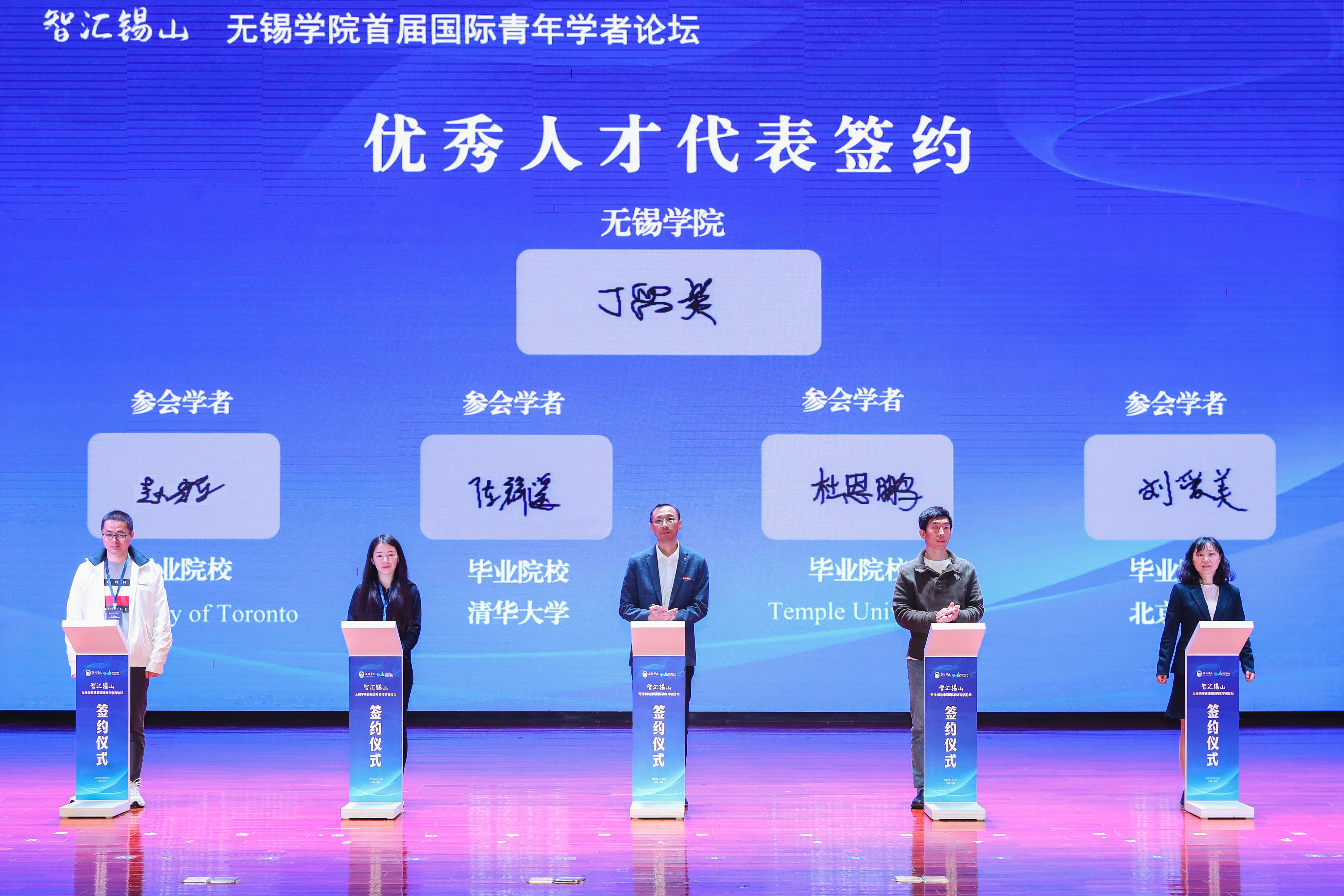 活动中,杨建新、包晓东为“无锡市招才引智工作站”揭牌。刘海涛被聘为学校物联网工程学院名誉院长。人事处处长丁留贯与来自清华大学、北京大学、多伦多大学等海内外知名高校的8名优秀人才代表现场签约。学校新入职高层次人才代表、清华大学博士后延星进行了交流发言。加拿大工程院院士姜晶以视频形式作《机遇、挑战与责任》专题报告,美国天普大学教授杜恩鹏、吉林大学教授刘苗作《物联网通信安全防御与综合效能优化》等学术报告。
