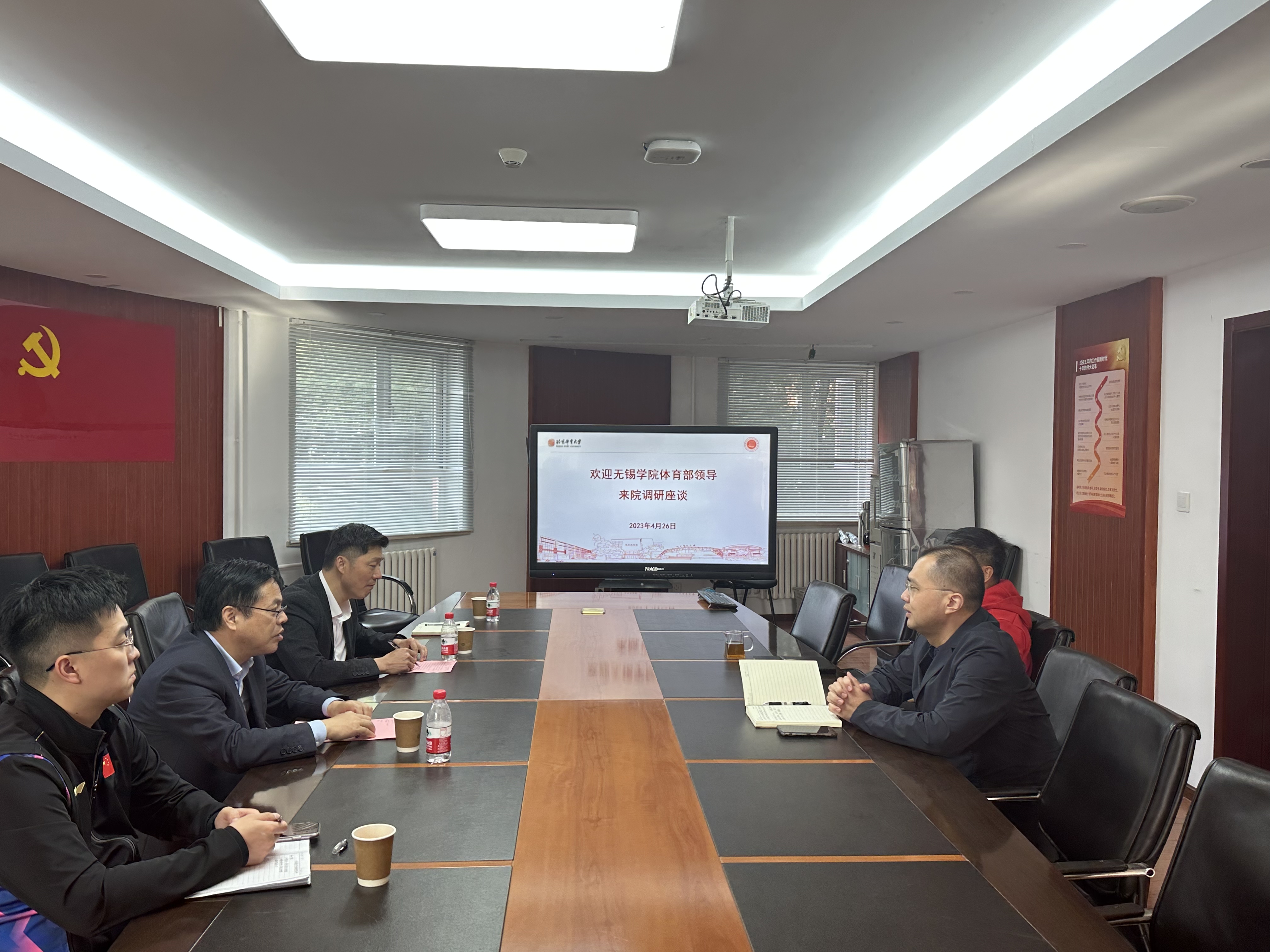 在与教育学院、竞技体育学院的座谈会上,王友明详细介绍了我校的专业设置、学科建设、人才培养、产教融合以及人才引进的相关政策。他表示,北京体育大学是国内顶尖的体育类高校,希望双方以本次交流为契机深入探讨,寻求合作机会。宋巨华详细介绍了我校体育部的基本情况、发展规划。双方就增设新兴体育竞技项目、学校特色体育项目、体育类专业的申报与建设、体育课程思政等方面进行了深入的探讨交流。