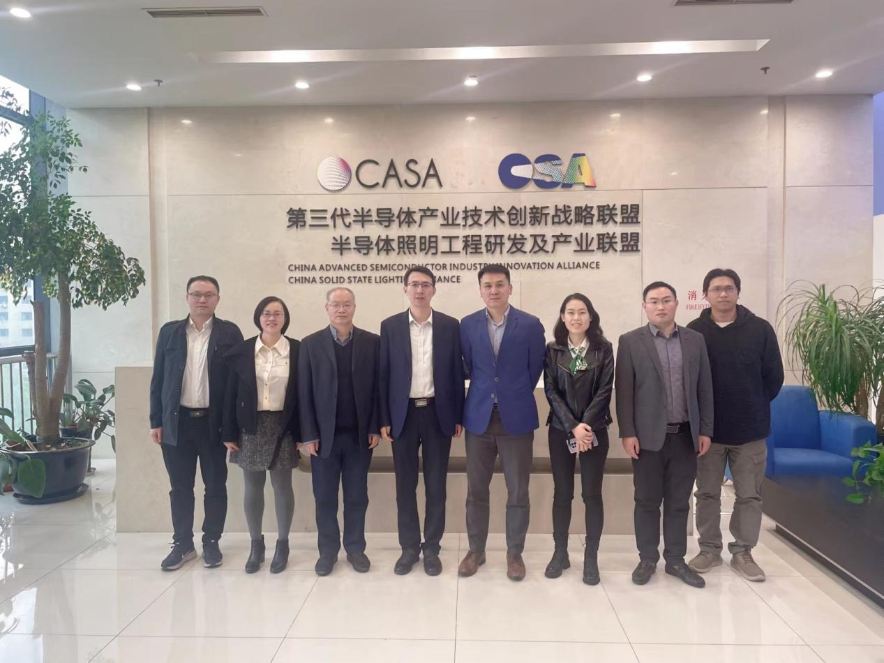 冯亚东对曹广喜一行的莅临表示欢迎,并介绍了从半导体照明工程研发及产业联盟到现在的第三代半导体产业技术创新战略联盟的发展历程和“一体两翼多平台”的创新机制,持续为先进半导体产教融合产业学院建设赋能。