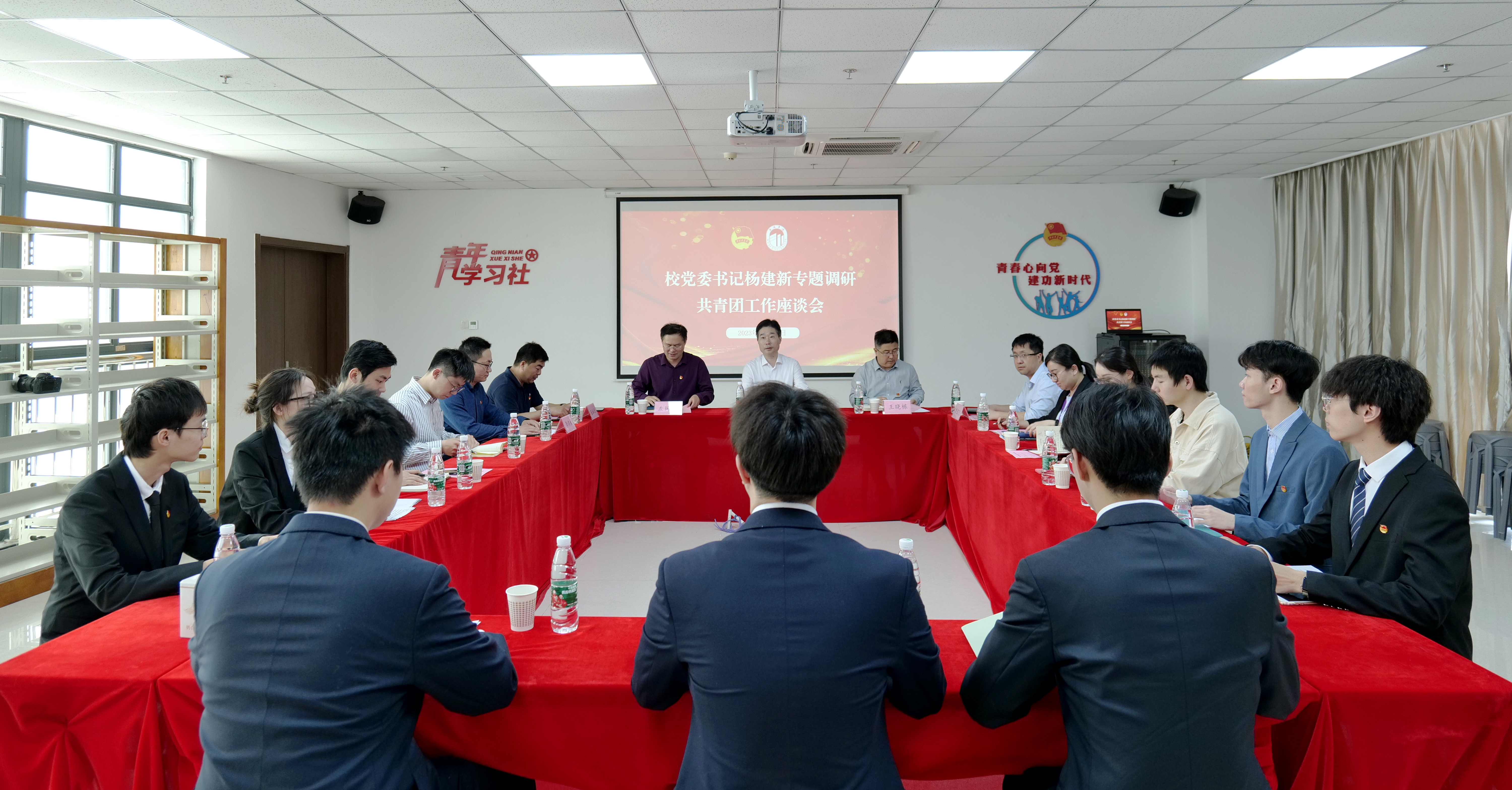 随后,在大学生活动中心305室召开专题调研座谈会,左同宇主持会议。会上,校团委书记李沛武汇报了学校共青团工作,省市两红两优及校青年五四奖章获得者代表作交流发言,校学生会、青年志愿者协会、社团联合会、青年学习社等校级学生组织的学生代表结合对习近平总书记关于青年工作重要思想的学习,围绕工作、学习、竞赛、社会实践、志愿服务等方面分享了自身成长经历,生动阐释了当代青年学生赓续红色血脉、勇担强国使命,再次发出“请党放心,强国有我”的青春誓言。