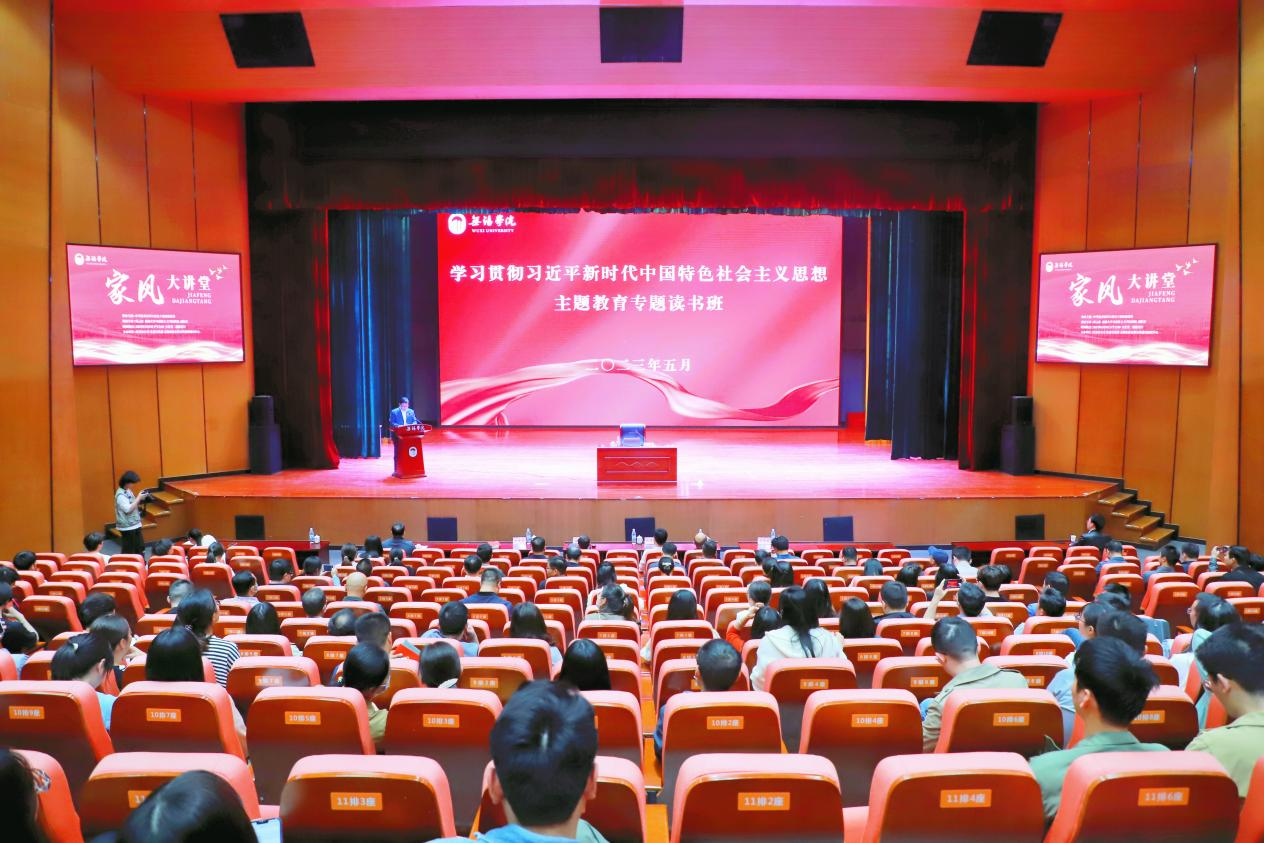我校主题教育专题读书班成员,党政部门和二级院部管理人员、教辅人员,专职辅导员,学生代表等300余人参加会议。(纪委办公室/文:贾岳红;图:吴志新、陈琪琪;审核:李步浩)